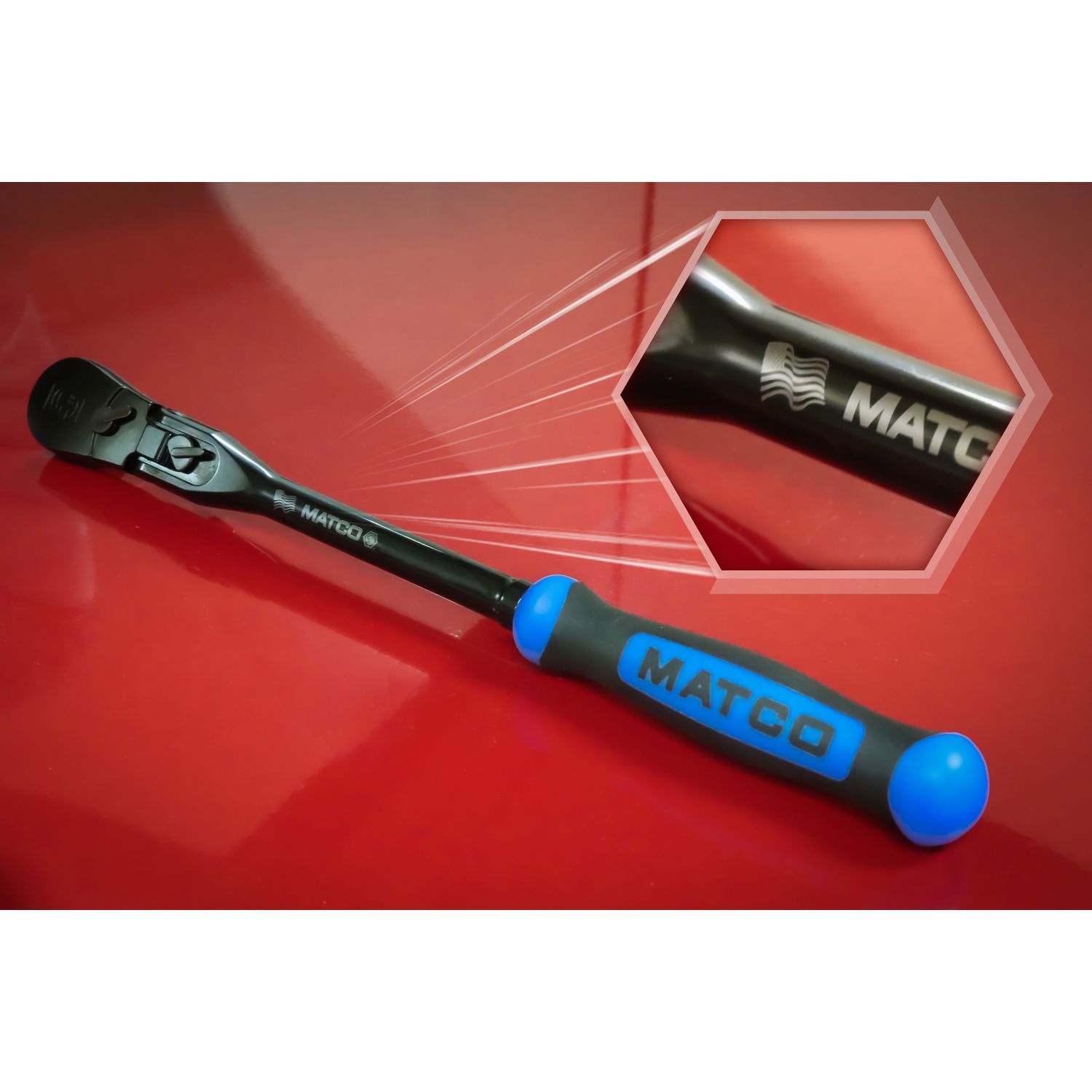 Unique 9 position locking flex head ensures that the ratchet head maintains the desired position regardless of size or applied load