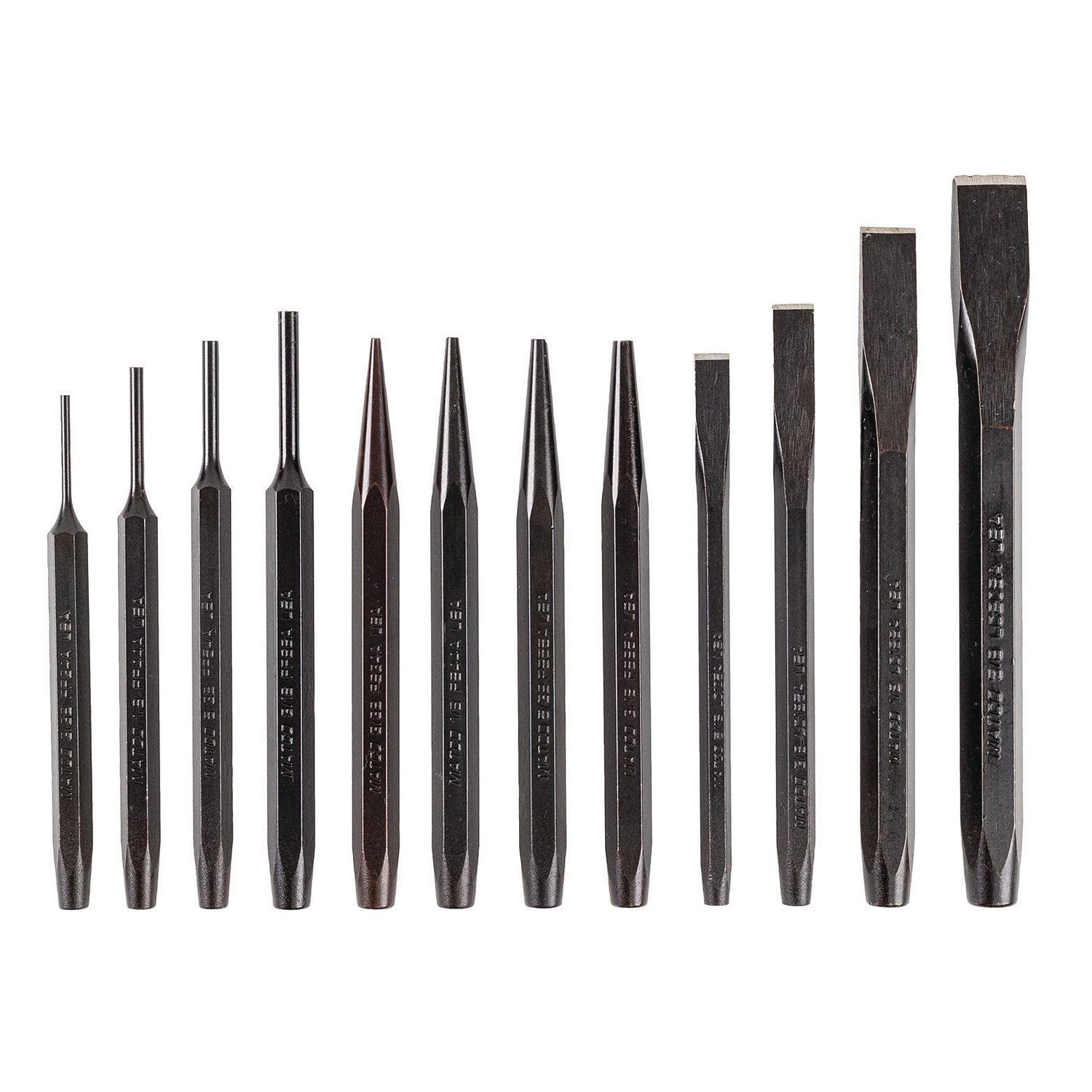 Includes 4 cold chisels, 4 pin punches and 4 starter punches