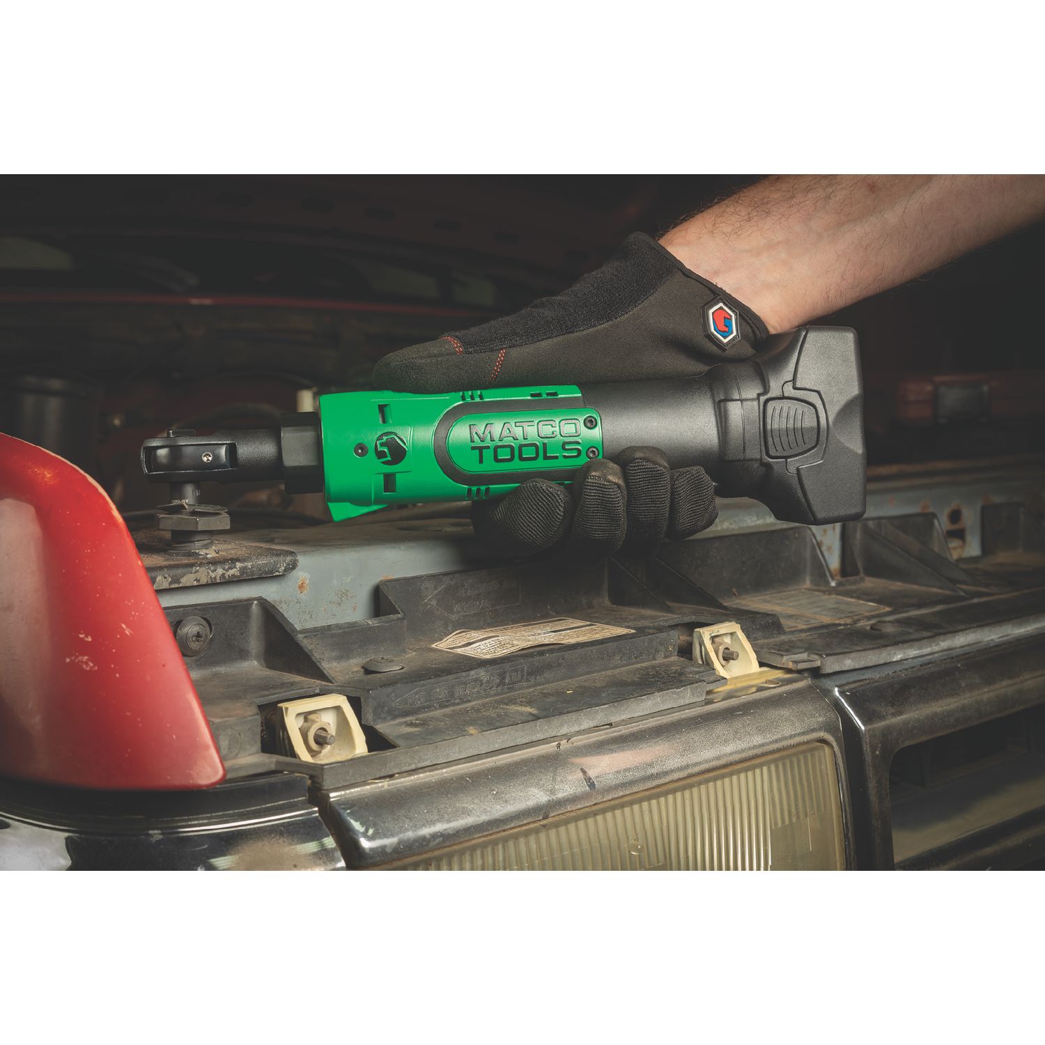 QUICK WORK ON FASTENERS. Cordless ratchet with 330 RPM allows for quick removal and installation of fasteners