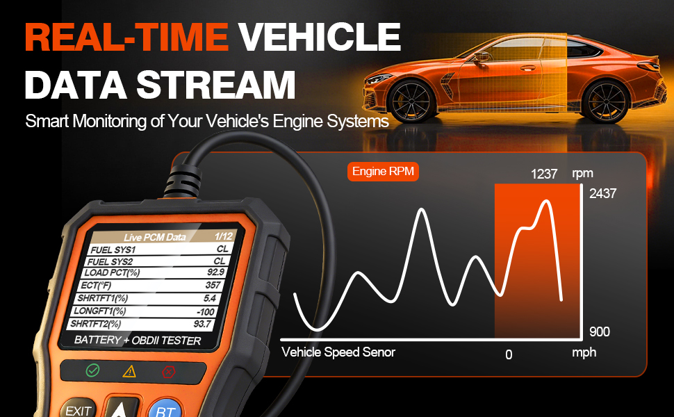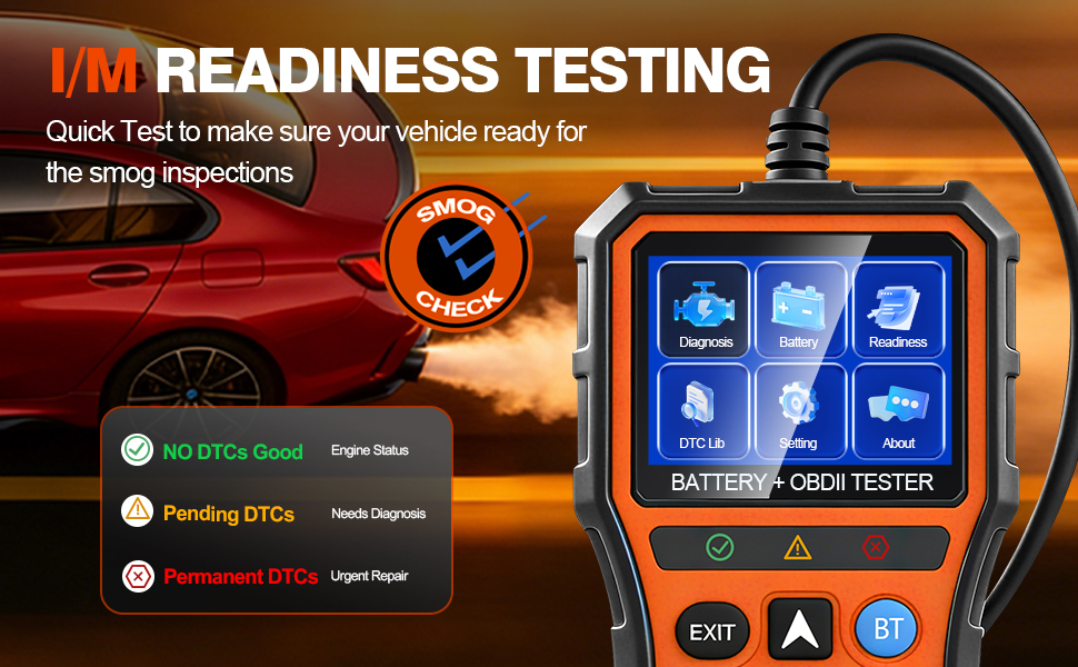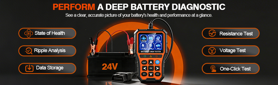 【One-Click Battery Health Check】Our exclusive one-click BAT battery diagnostic feature continuously monitors voltage and health status, visualizing potential risks to prevent unexpected failures. This car diagnostic scanner is your guarantee for worry-free travel and driving safety. Additionally, the OBD2 code reader for cars and trucks offers advanced diagnostics, including testing of O2 sensors and EVAP systems, precisely pinpointing the root causes of abnormal fuel consumption and emission faults.