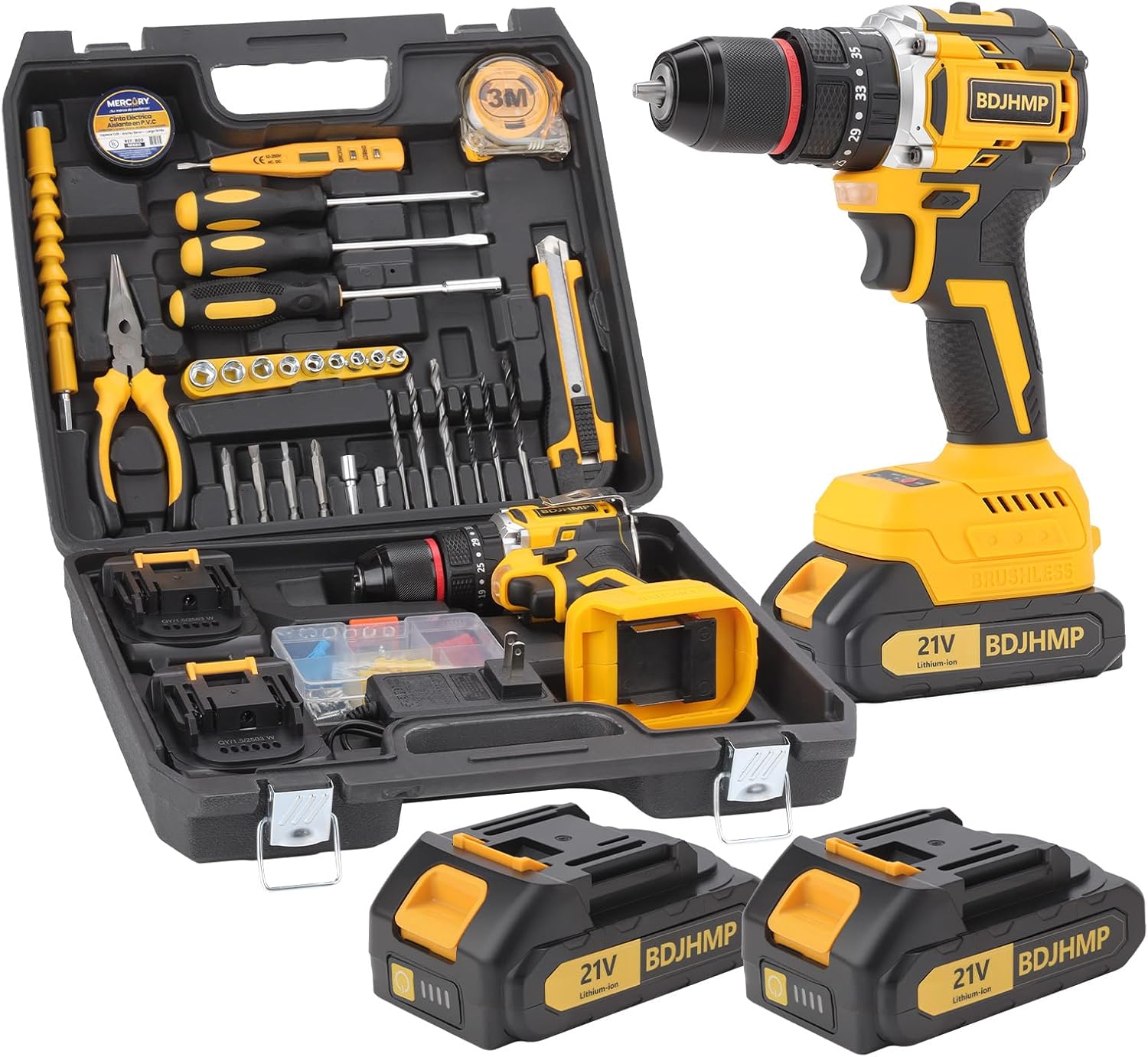 Multifuntional Tools Kit :Professional Home Brushless Electric Drill Tools Drill Bit Kit contains the tools you need for DIY, repairs, it’s the perfect hand tool kit for home, decorating, garage, furniture assembling, office, yard, or daily home maintenance. Ideal for gifting to your family and friends. All tools are neatly stored in a sturdy tool box, which can protect and easily organize the tools inside, making it easy for users to find the tools they need to use.