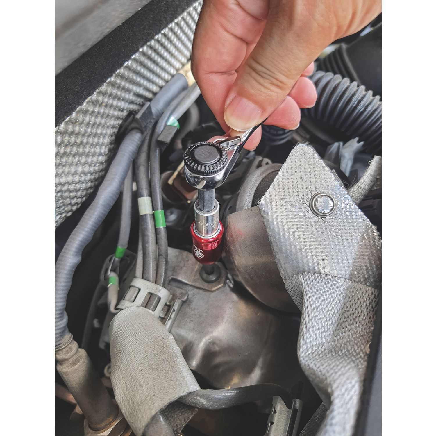 COMPACT RATCHET. 1/4\” compact hex bit ratchet is palm size for excellent access in tight work areas