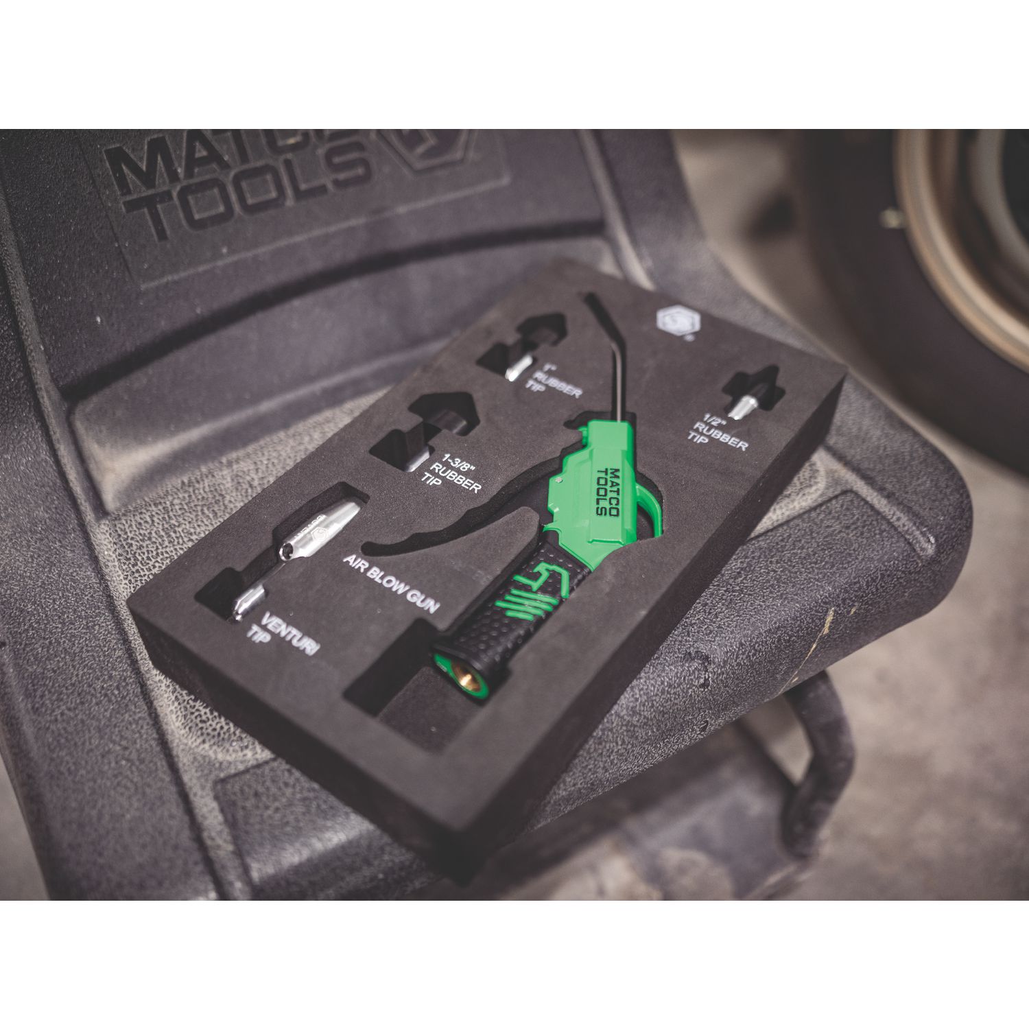 BLOW GUN KIT. Set includes: 4-1/2\” blow gun, slide on venturi tip and rubber tips: 1/2\”, 1\” and 1-3/8\”