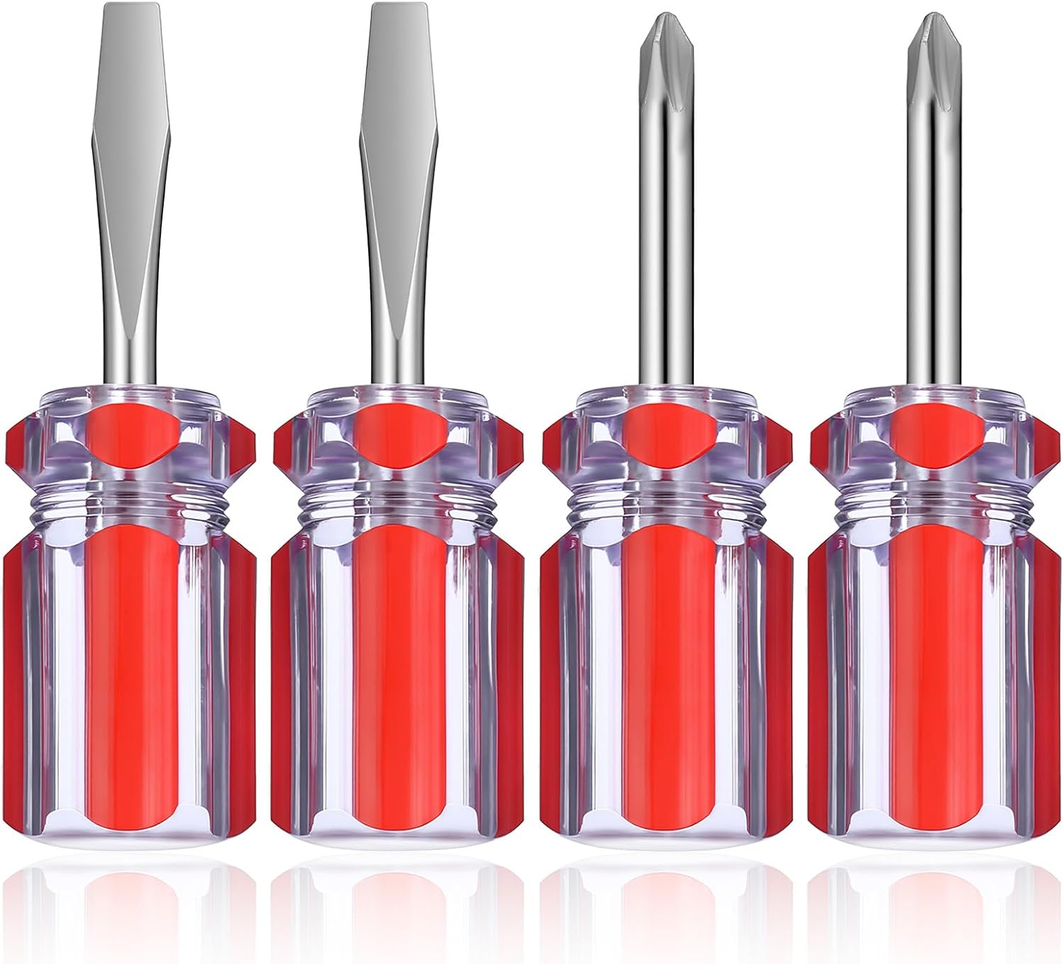 【Durable & Ergonomic Build】Crafted from hardened steel for strength, these small screwdrivers and small slotted drivers resist wear. The red PVC handles provide a comfortable, non-slip grip, making these head screw drivers and short screwdrivers reliable for repeated use.