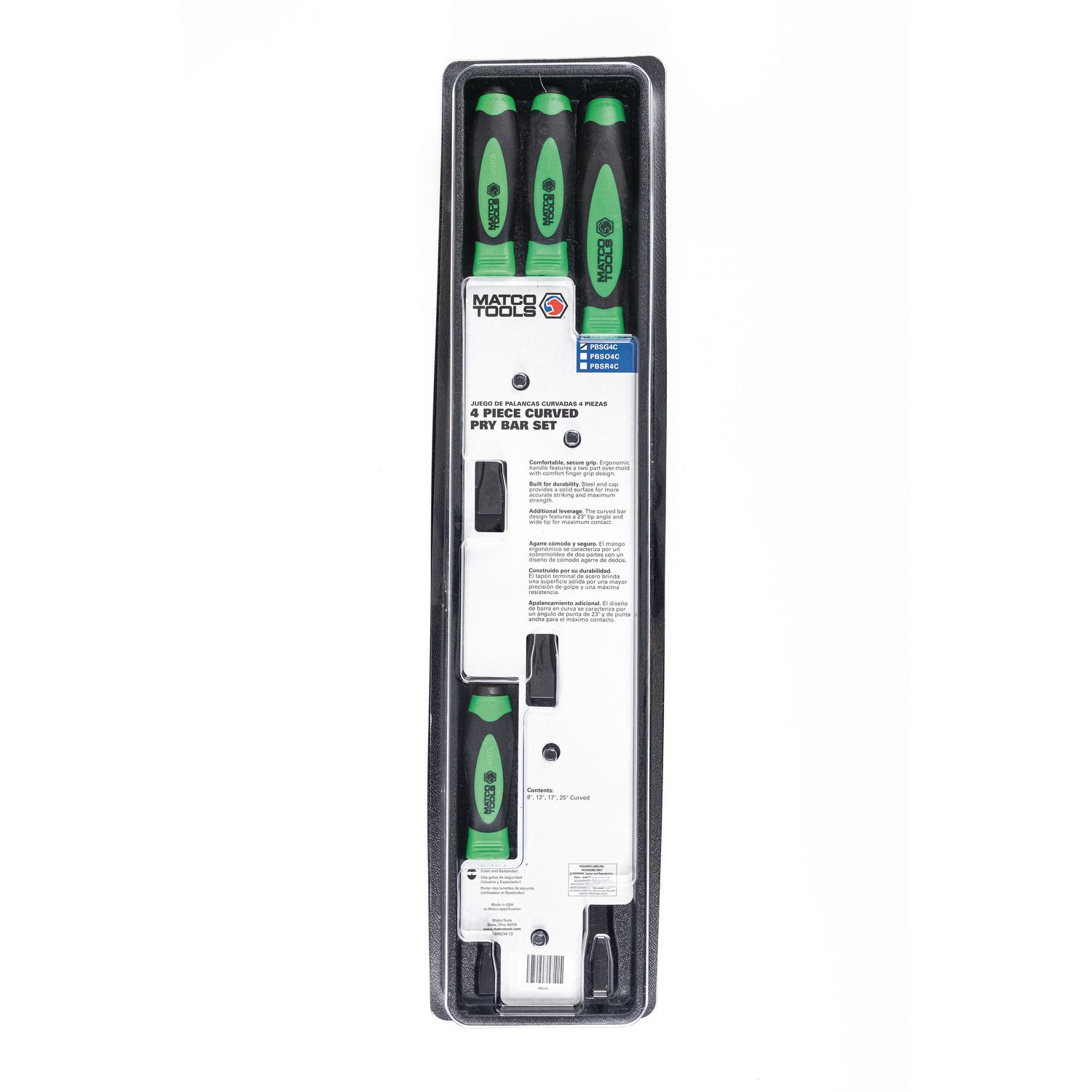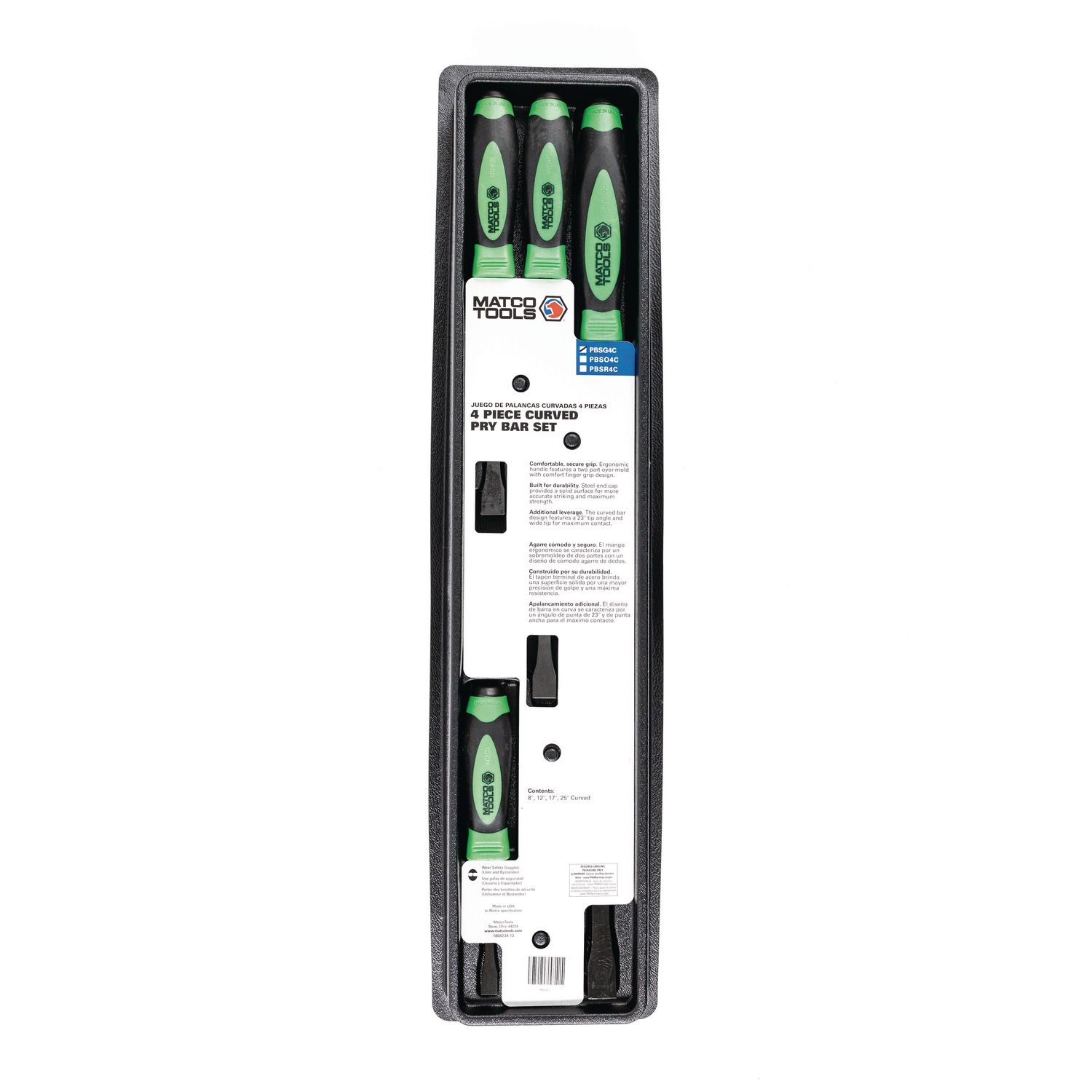 QUALITY MADE IN THE USA. Pry bar set includes 8\”, 12\”, 17\” and 25\” curved pry bars and is 100% proudly made in the USA, ideal for automotive and heavy-duty truck applications