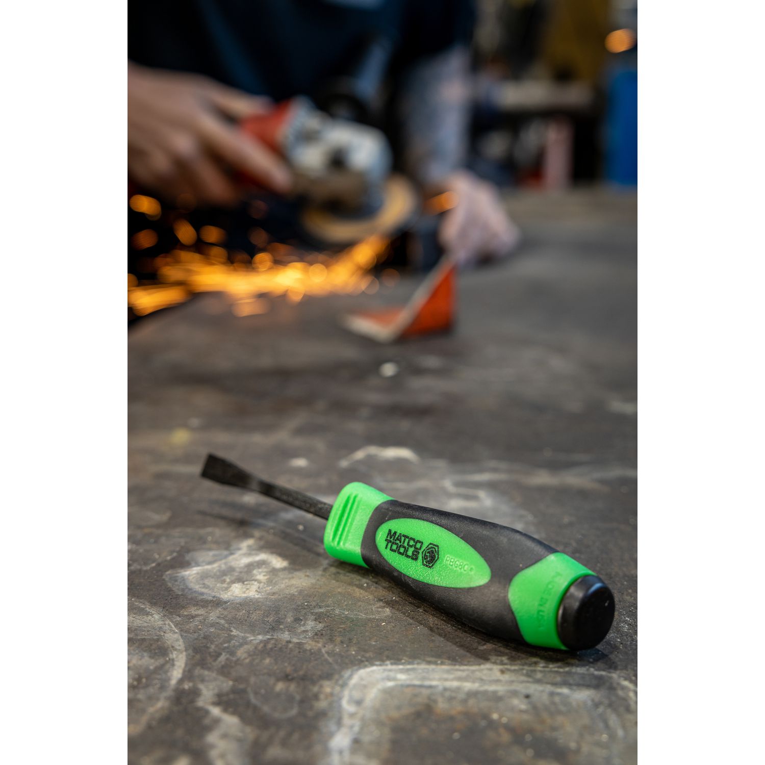 DURABLE YET COMFORTABLE HANDLE. Heavy-duty handle features a 2 part over-mold with a comfort finger grip design and a steel end cap