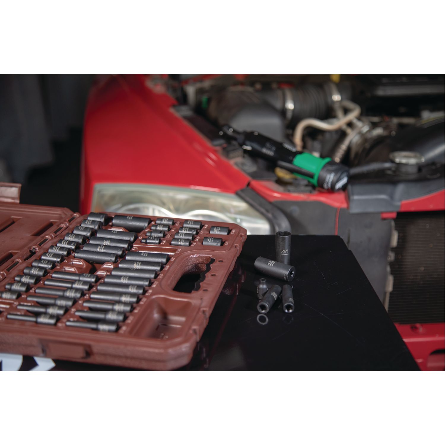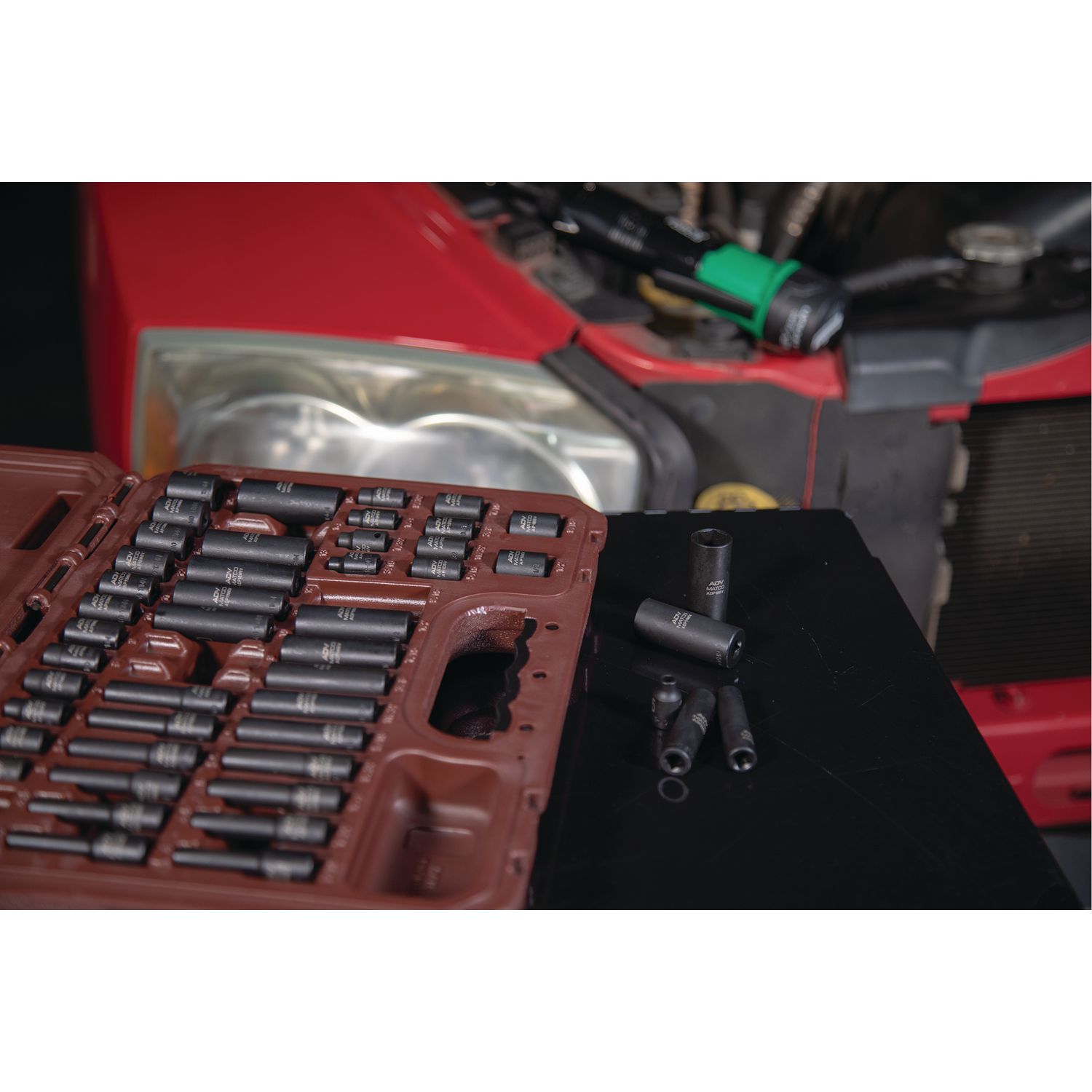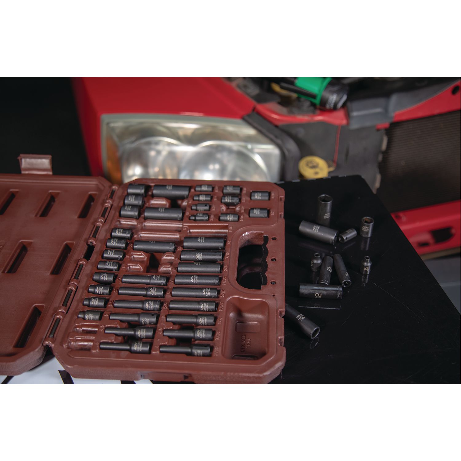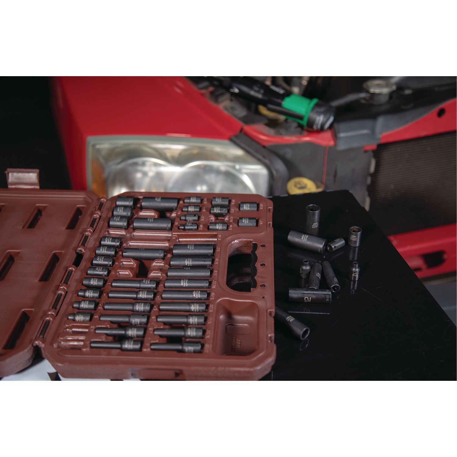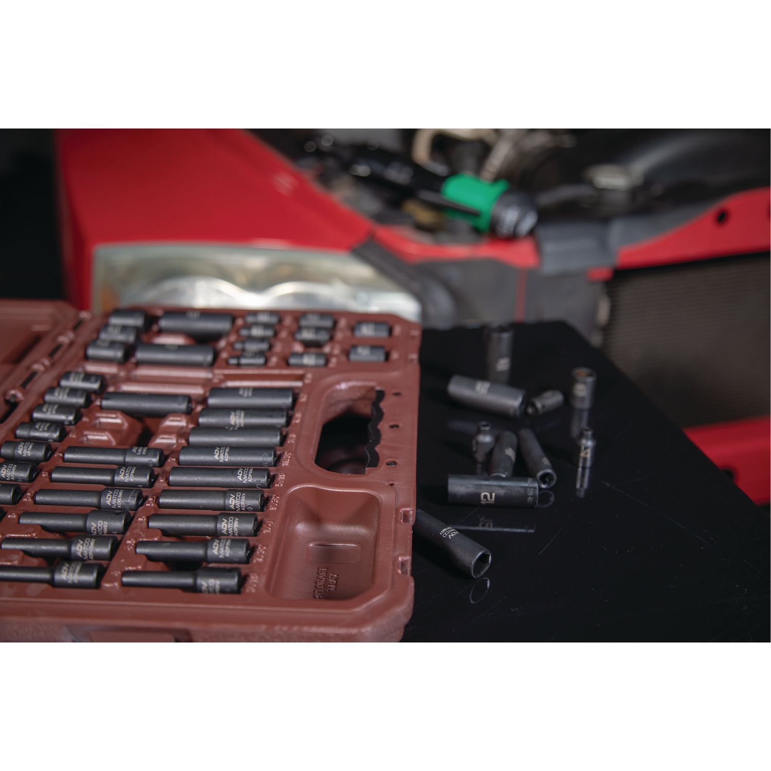 High visibility size markings quickly identify socket, even in poorly lit work areas