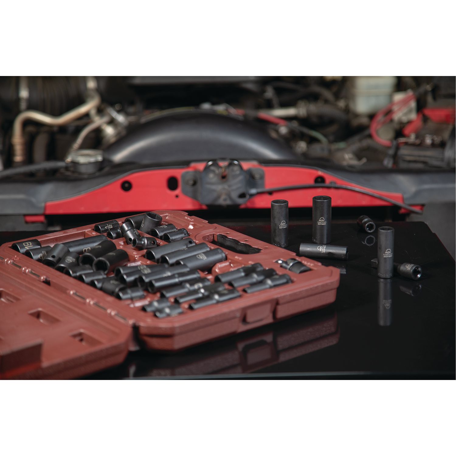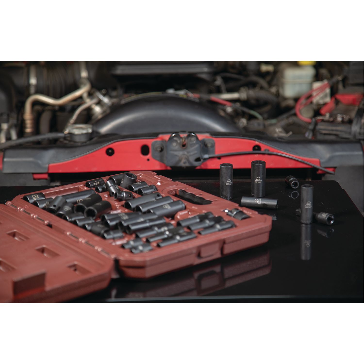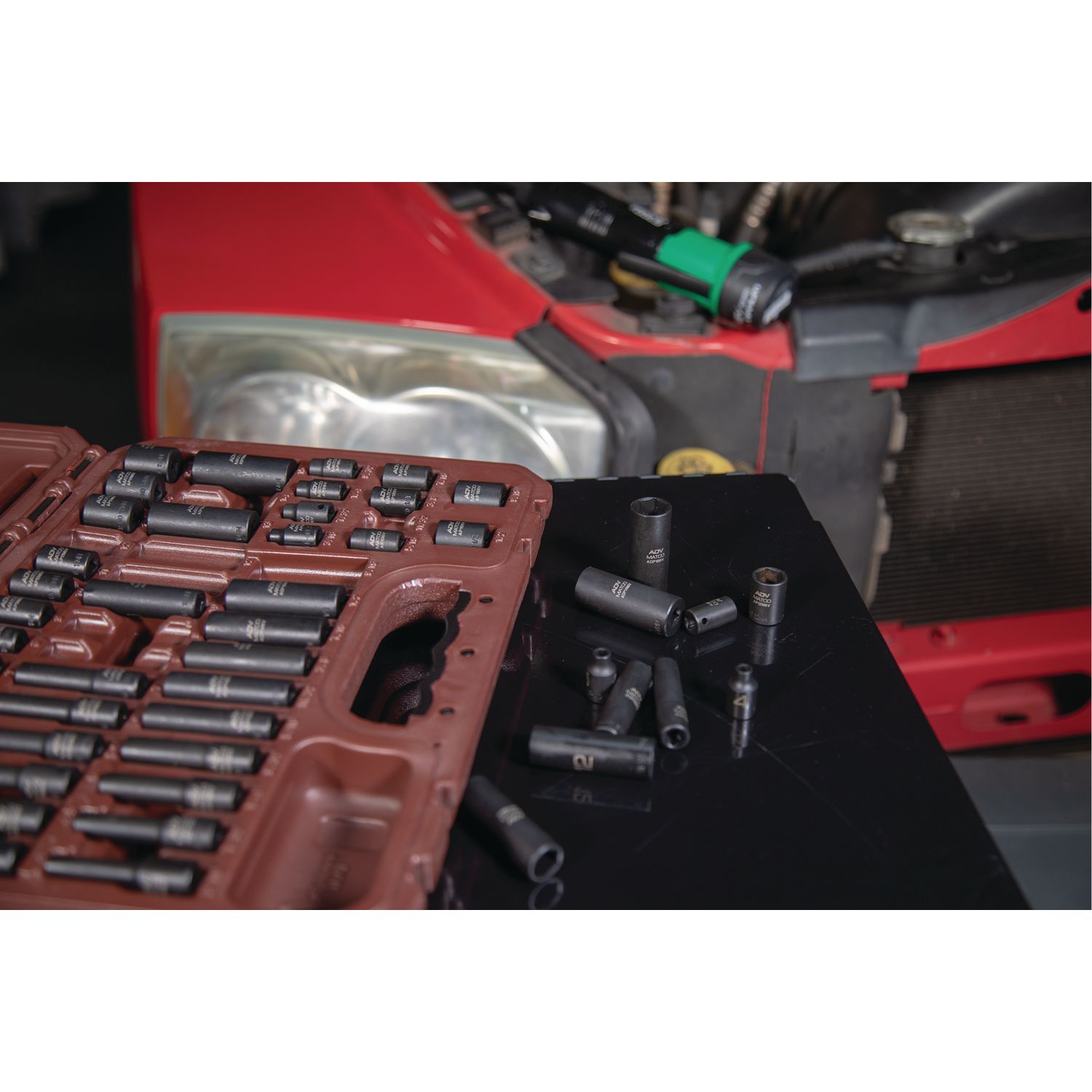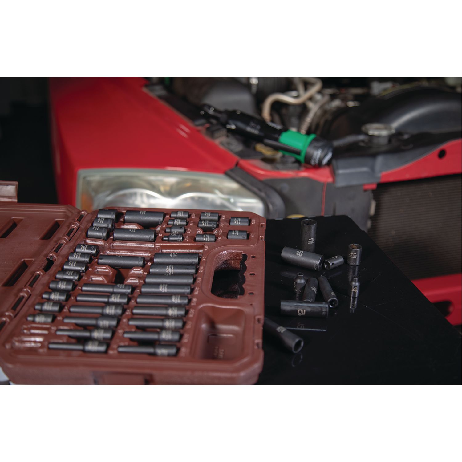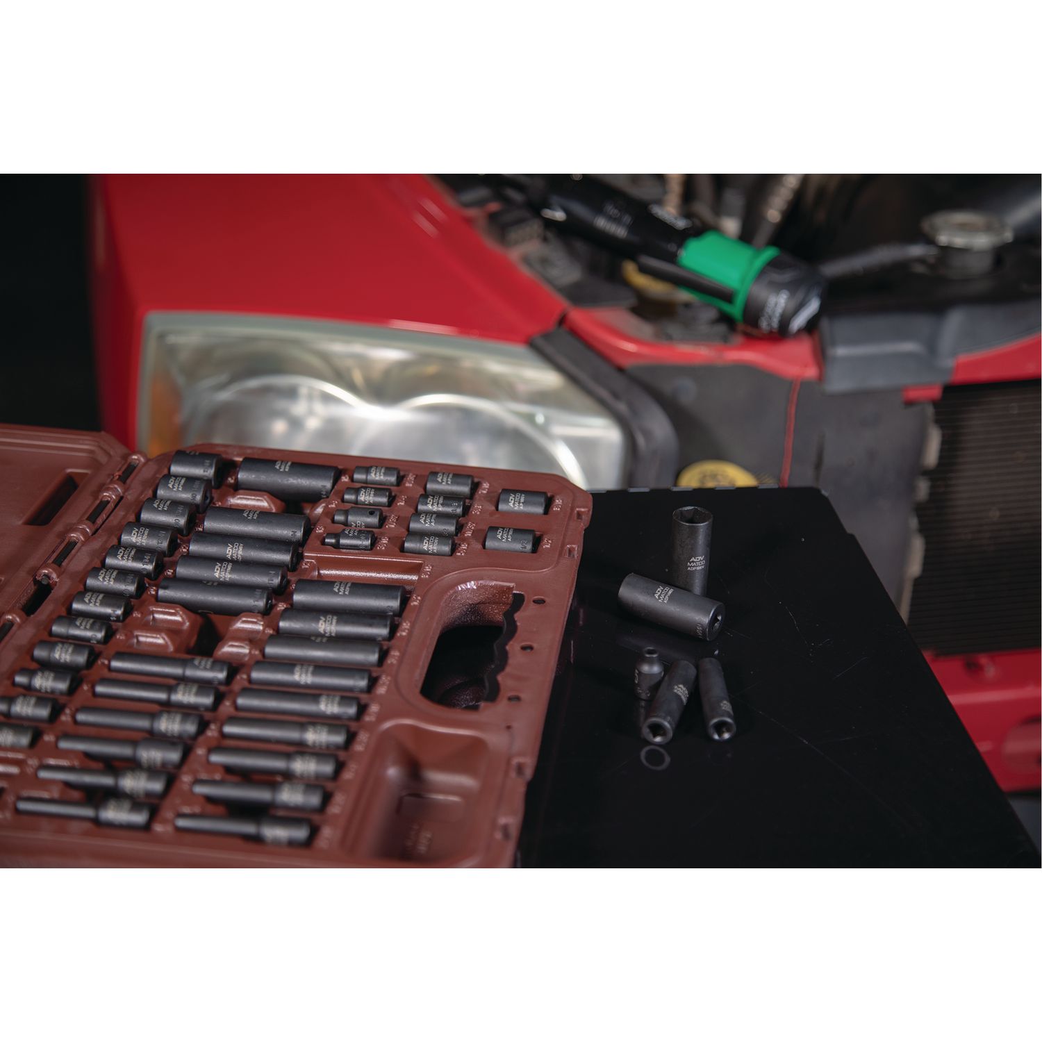 High visibility size markings quickly identify socket, even in poorly lit work areas