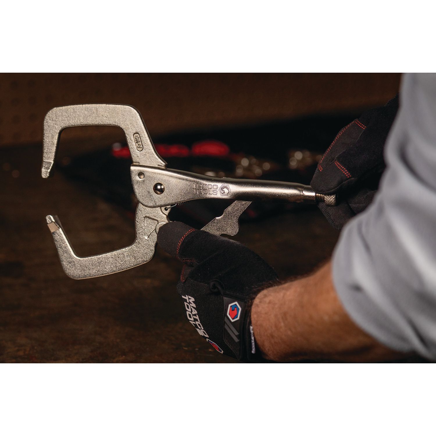 Includes: one C-clamp with regular tips, curved jaw pliers with and without cutters and needle nose locking pliers