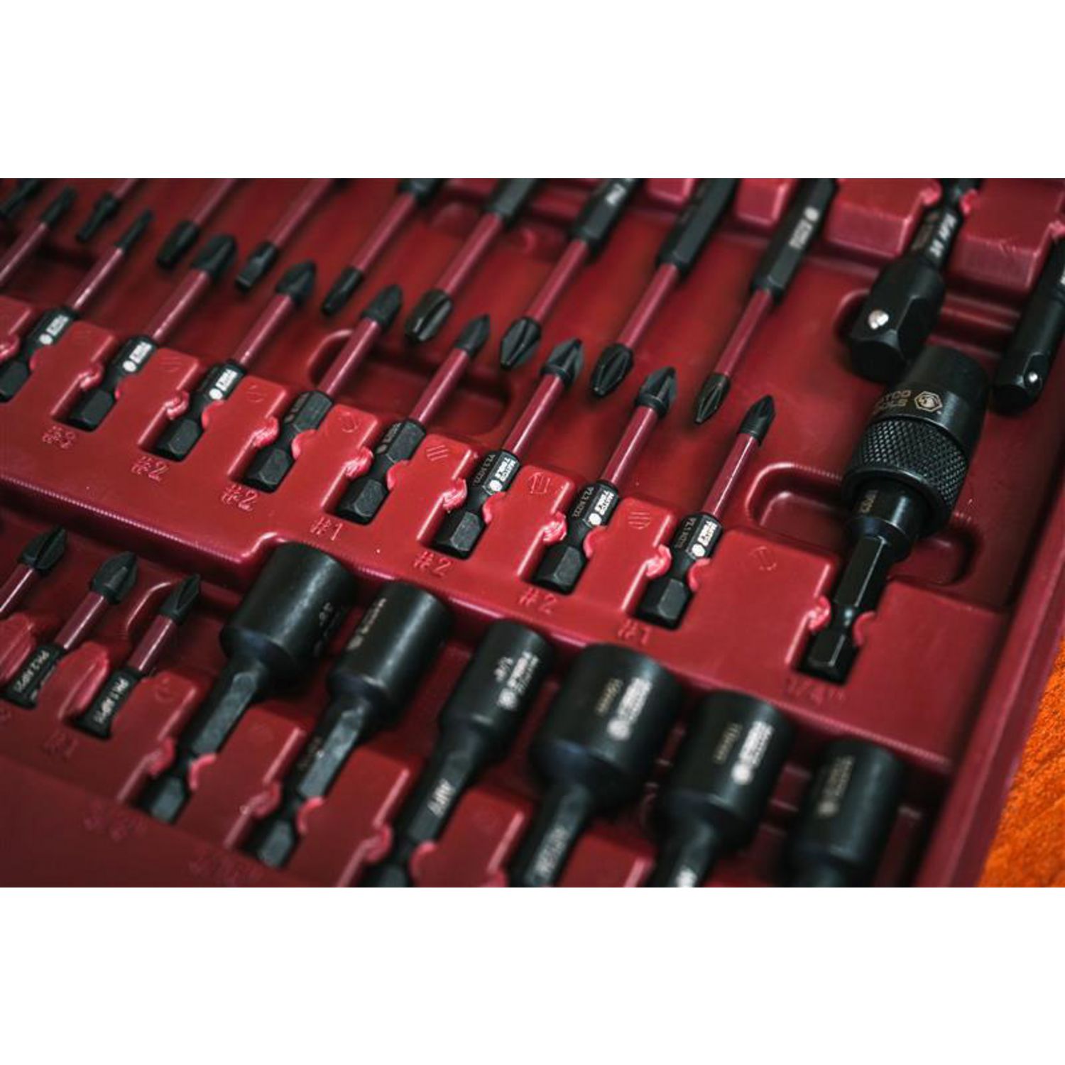 2\” impact bits: Phillips 1, (2)-2, 3, Pozidriv 1, (2)-2, TORX® 10, 15, 20, 25, 27, (2) 30, 40