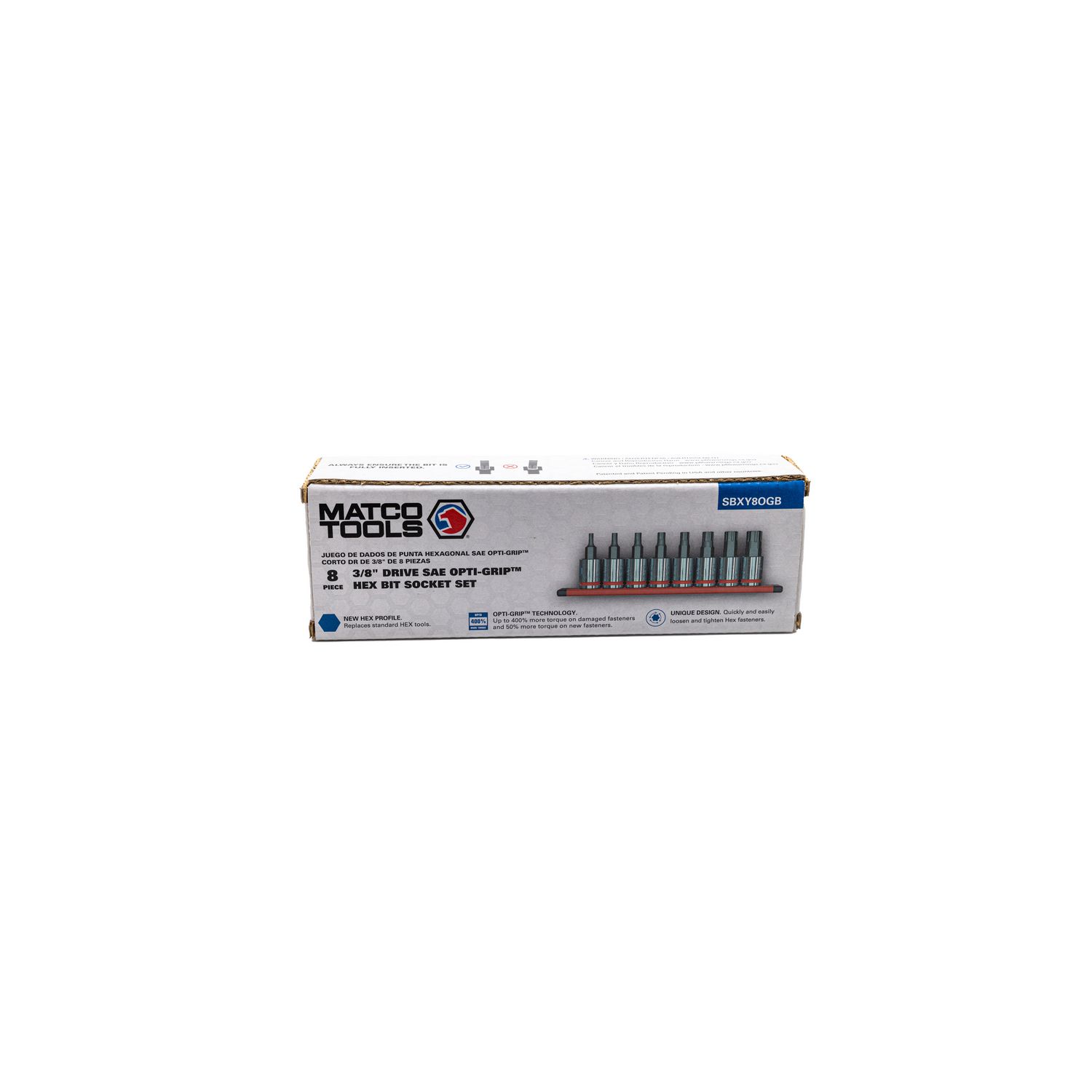 8 PIECE 3/8 DRIVE SAE OPTI-GRIP HEX BIT SOCKET SET SBXY8OGB | eBaydiy Tools