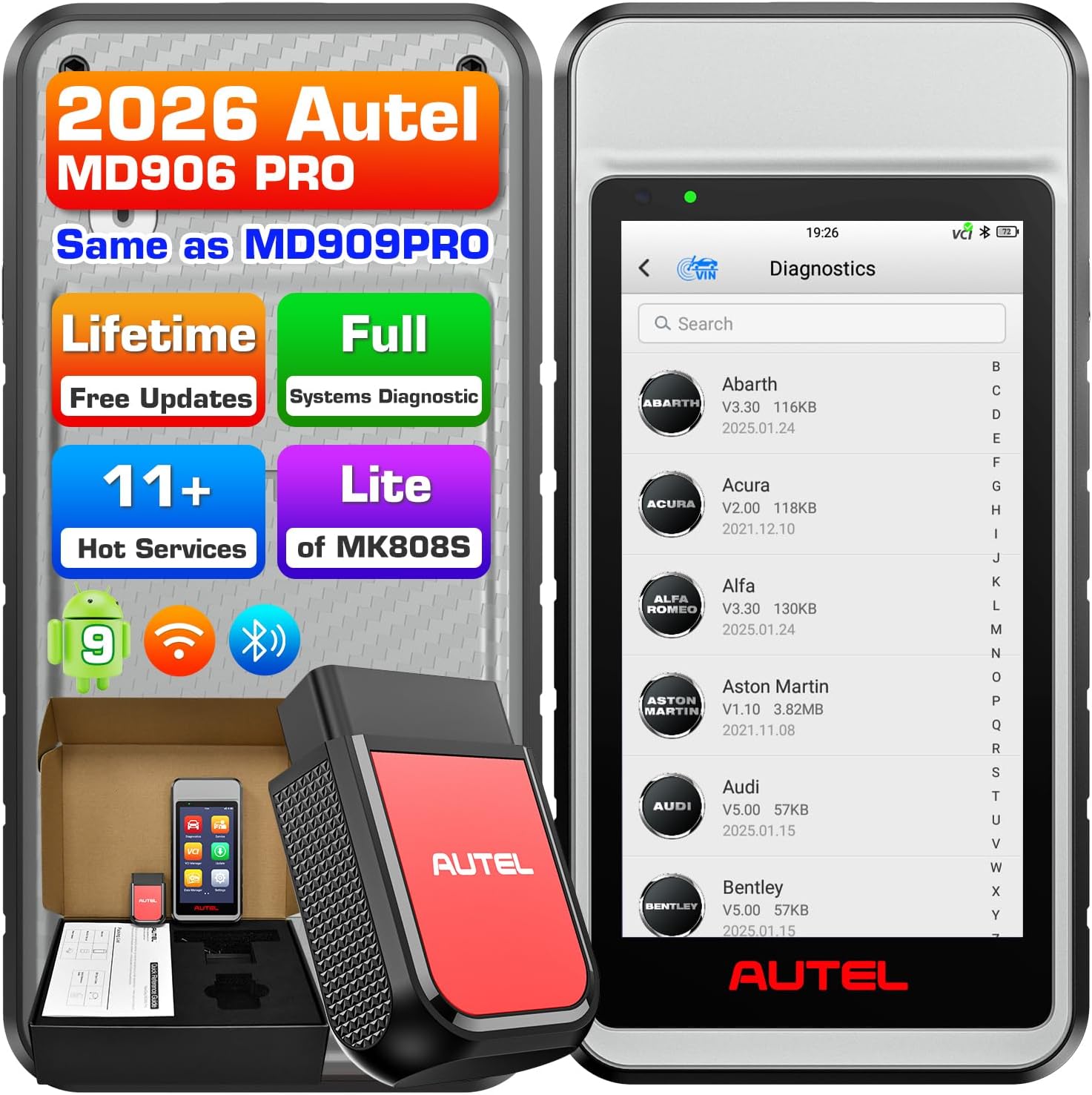 🔥【2026 Rule-Changer: Autel MD906 PRO】Autel MaxiDiag MD906 PRO OBD2 scanner diagnostic tool is absolute k-ing of co.st-effectiveness to date. As the lite version of MaxiCOM MK808S/ MK808/ MaxiCheck MX808, MD906 PRO obd2 scanner for cars collects m-ost essential functions: ✅11 Services ✅Full Systems Diagnostic ✅CAN-FD ✅Read/ Clear Codes ✅Lif.etime F-ree Up-dates ✅Complete OBD2 Functions ✅Auto VIN & Auto Scan ✅FCA AutoAuth & VW SFD ✅150+ Brands. Autel MD906PRO is a must-have for all technicians and home DIYers.