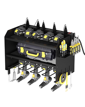 Large Size:Your ultimate tool mate! 4 drill slots + 2-tier shelves & dual hooks organize all tools in one spot. Never waste time searching – enjoy a clean workspace that boosts efficiency!