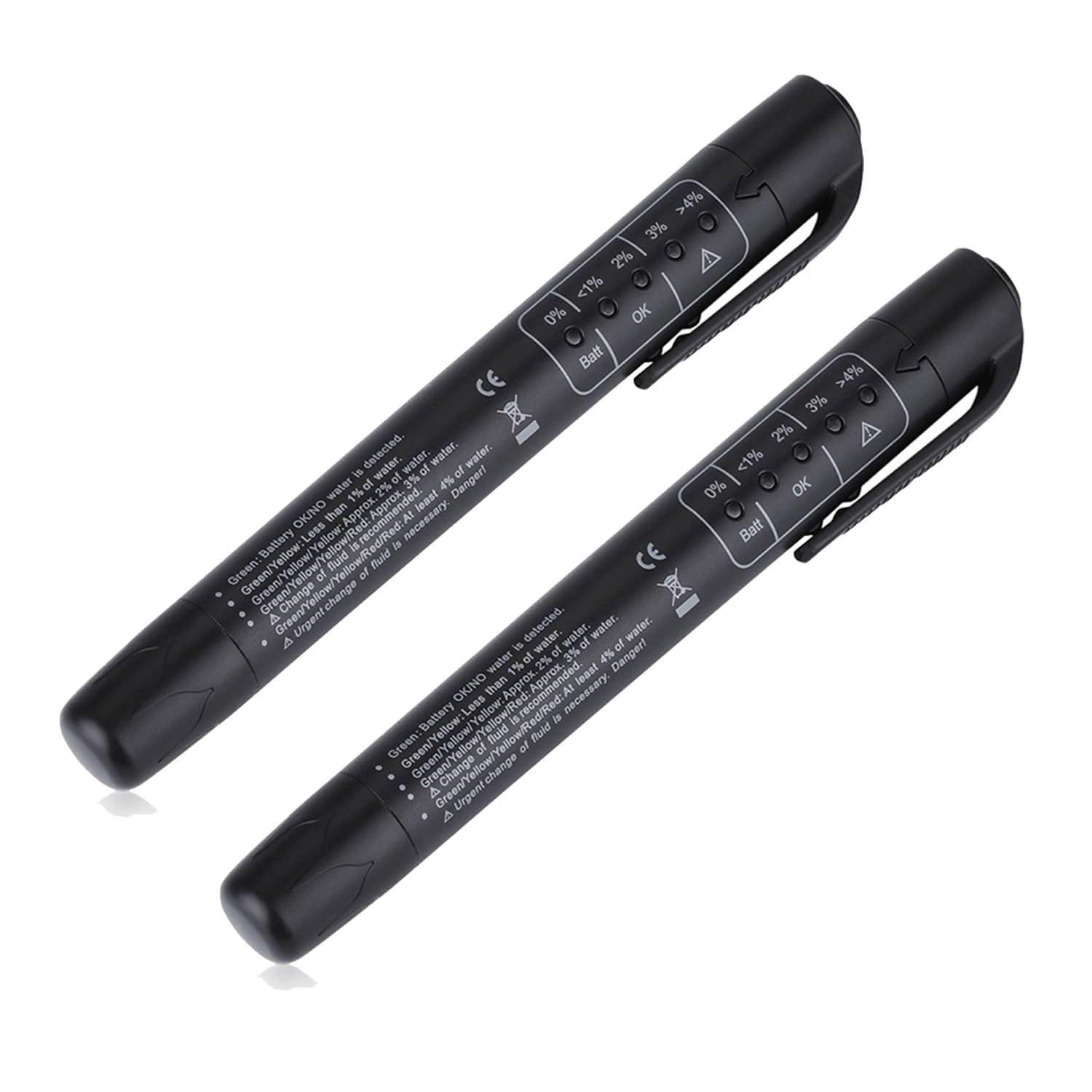 Brake fluid detection pen is based on the change in conductivity to determine the moisture change brake fluid. It shows clearly the extent of moisture contained by the light-emitting diode, high moisture content will lead to lower boiling point, affect braking performance. Red indicates the brake fluid needs immediate replacement, green represents good condition, yellow indicates the state is acceptable but soon replaced.