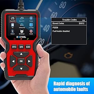 The Exctool ET331 is the all-new upgrade from basic OBD II code readers in all aspects. Not only can this full OBD2 mode OBD2 diagnostic tool read diagnostic fault codes and freeze frame data, it can also retrieve live engine parameters, O2 sensor test/ on-board monitor test results and do an EVAP test to better help you diagnose car issues. It‘s plug and play: plug into your vehicle’s 16-pin OBDII DLC and you are ready to go. It has a huge DTC library and will be a very useful and reliable auto accessory which offers comprehensive vehicle information for rapid, accurate diagnosis and repair.