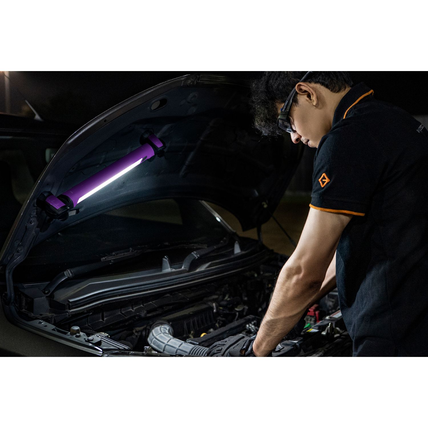 POWERFUL UNDERHOOD LIGHTING. Compact rechargeable underhood light with slim and ultra-bright design provides powerful illumination for the engine bay