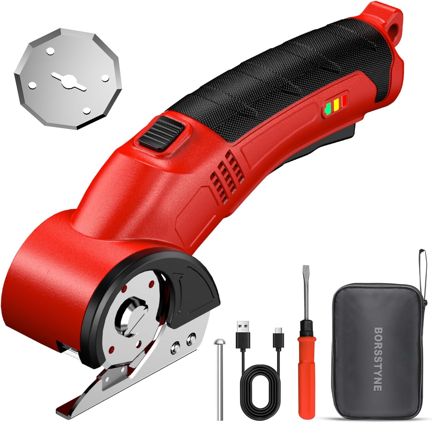 These Borsstyne cordless electric scissors are low-key one of the most useful tools I didn’t know I needed.First thing — they cut through cardboard like butter. If you deal with a lot of Amazon boxes (like I do), this makes breaking them down way faster and easier on your hands. No more struggling with box cutters or wearing out regular scissors.I’ve also used them on fabric and thicker materials, and they handled it surprisingly well. The motor has solid power without feeling out of control. It’s strong, but still easy to guide.The cordless design is a huge plus. Lightweight, comfortable grip, and not awkward to hold. Battery life has been good so far — I can get through multiple projects without constantly recharging.I also like that it comes with extra blade and a storage case. Makes it feel complete and not cheap.If I had to nitpick, it’s not a heavy-duty industrial tool — but for home use, crafts, DIY, breaking down boxes, carpet edges, etc., it’s more than enough.For the price and convenience, this is a 5-star buy for me. Simple, powerful, and saves time. 👍