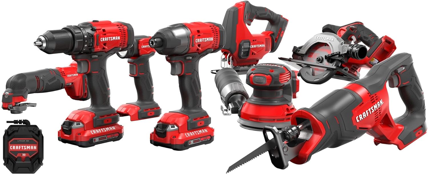 CRAFTSMAN V20 Cordless 8-Tool Combo Kit With Two 2.0 Ah Batteries and Charger (CMCK801D2)
