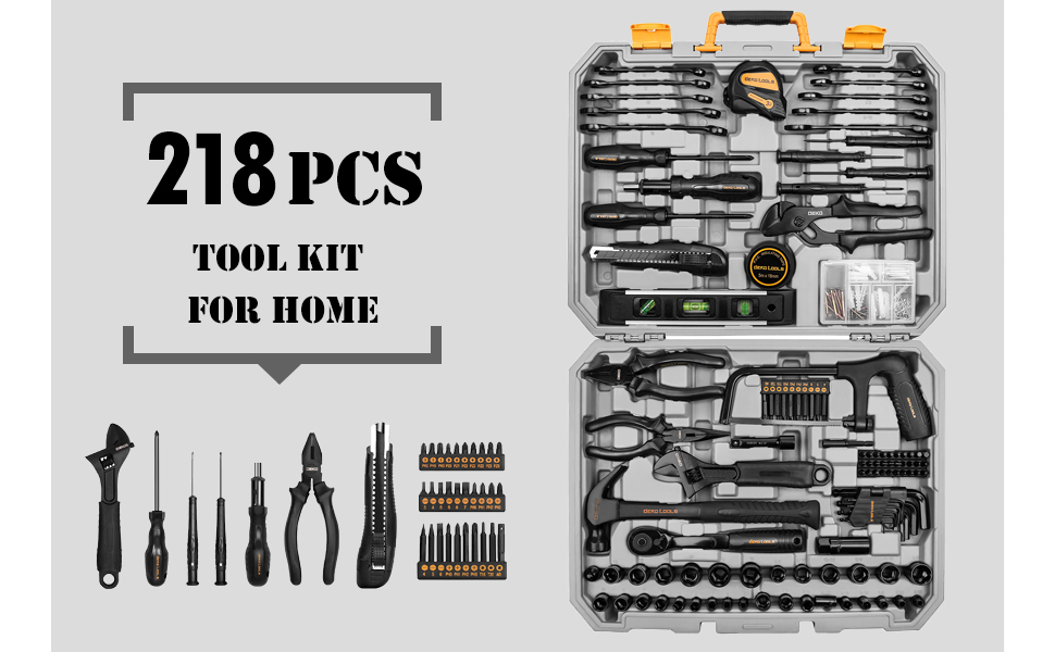 DEKOPRO 218-Piece General Household Hand Tool kit, Professional Auto Repair Tool Set for Homeowner, General Household Hand Tool Set with Plier, Screwdriver Set, Socket Set, with Portable Storage Case eBaydiy Tools