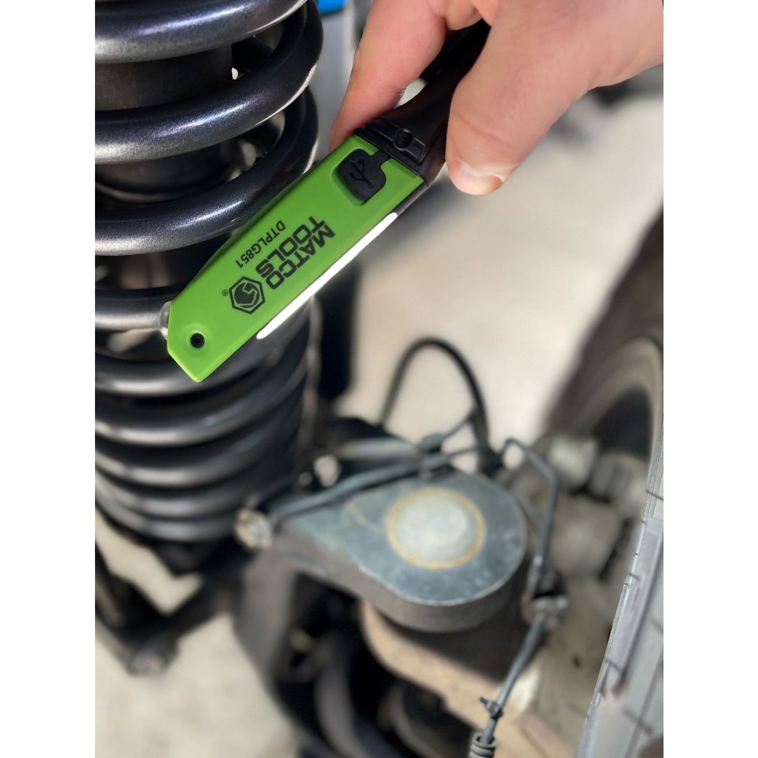 BUILT-IN LIGHTS. Includes built-in top and side LED lights to assist in working in dimly lit environments