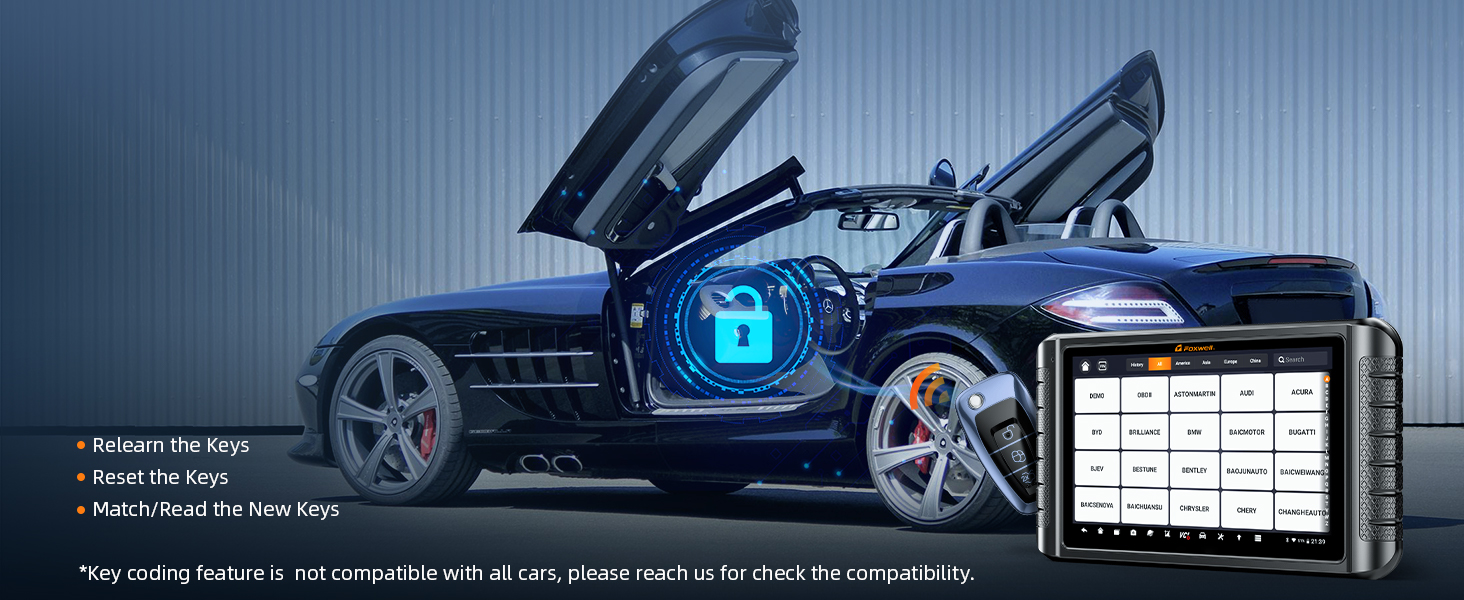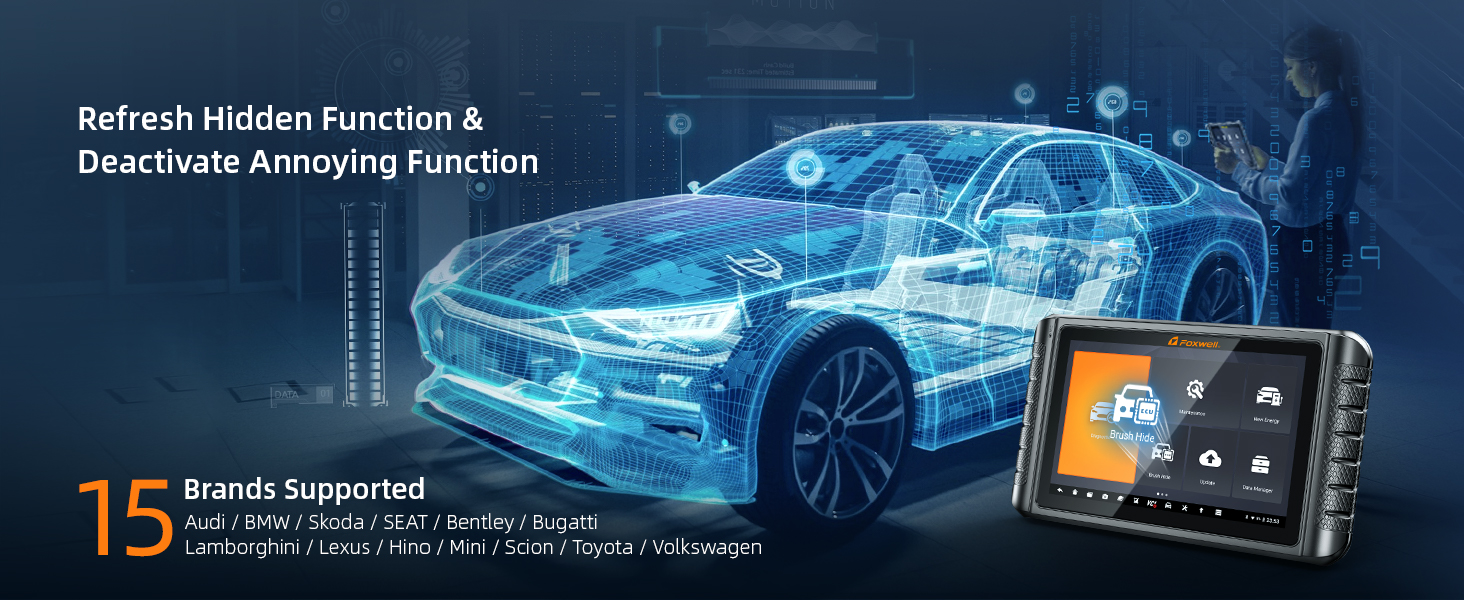 1 ECU Coding 2 Bi-direcrtional Control 3 Activate Hidden Features 4 All Systems Diagnosis 5 Key Coding NEWEST FOXWELL SCANNER NT1009 — COMES WITH ELITE FEATURES TO SERVE YOU BETTER 36 Maintenance Services to Helps You Solving Tricky ProblemOIL RESET – Reset the oil life systems every time the oil and oil filter are changed;ABS BLEEDING – When the ABS contains air, the ABS bleeding function must be performed to bleed the brake system to restore ABS brake sensitivity;FUEL INJECTOR CODING – Code new injector numbers to replace the previous one when fitting the new injectors or after the replacement is completed;Power Balance, SAS Reset, EPB Reset, TPMS Reset, Gear Learn, Suspension Reset, E.G.R Reset, A/F Adaptation, Seat Match, etc. The video showcases the product in use.The video guides you through product setup.The video compares multiple products.The video shows the product being unpacked. video Merchant Video The video showcases the product in use.The video guides you through product setup.The video compares multiple products.The video shows the product being unpacked. video Merchant Video Battery Registration For BMW Cars