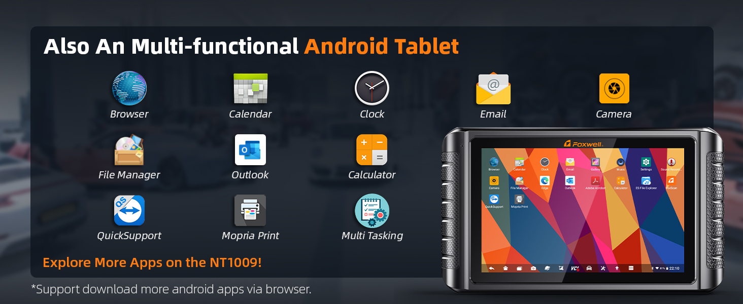 [Tech Crown of FOXWELL] NT1009 is the highest version of Foxwell’s diagnostic scanners currently, which is highlighted by its ①Quick & flexible wireless all system diagnosis–faster than bluetooth②Bi-Directional control;③All resets maintenance(Most scanners on the market only support some common special features);④Brush hidden functions;⑤Topology Mapping⑥Clear VAG guidance(fit for VW/Audi/Skoda/SEAT);⑦FCA SGW supports(fit for Chrysler/Dodge/Jeep/Alfa Romeo/Fiat after 2018);⑧Supports CAN/CAN-FD/KWP/DoIP protocols;⑨Built in android Apps for easy software update & data printing;⑩Compatible with 99.99% cars;⑪Support for 20 languages