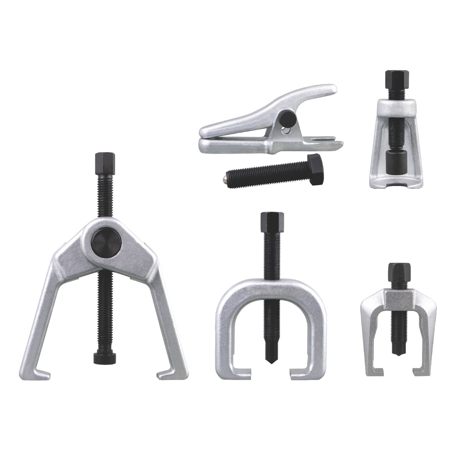 Kit includes five of the most commonly used tools for servicing ball joints, pitman arms, and tie rod end of nearly all domestic and import vehicles.