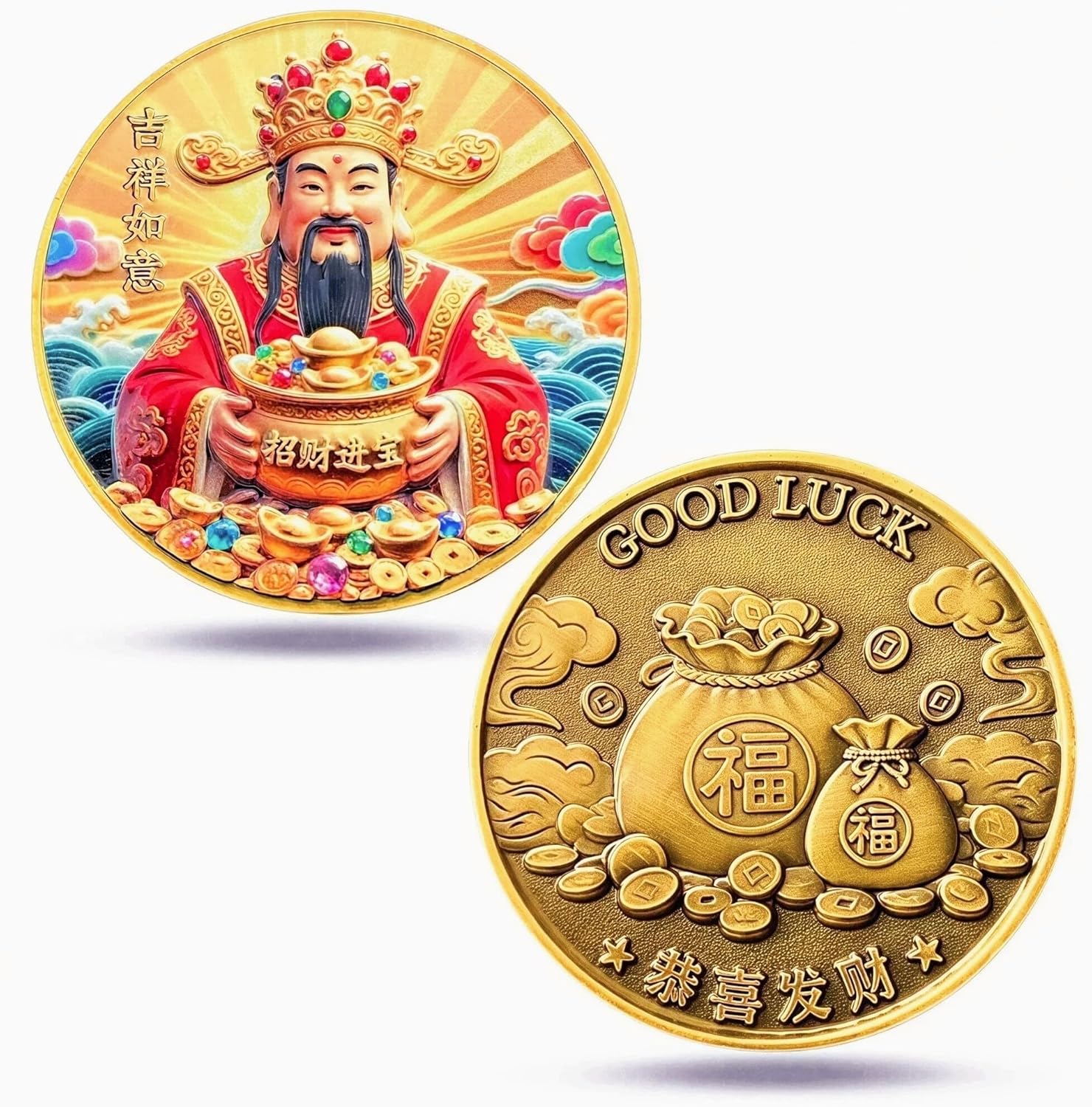 Good Luck Challenge Coin – Feng Shui Wealth Charm with God of Wealth, Chinese Lucky Coin & Lottery Ticket Scratcher Tool, Brings Prosperity and Good Fortune eBaydiy Tools