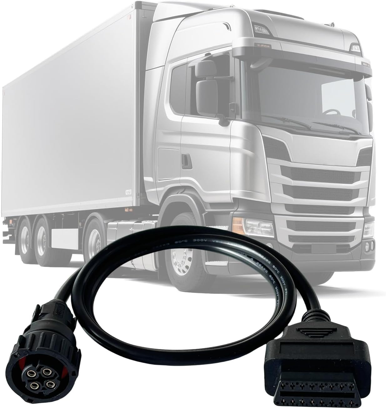 This obdii adapter cable is designed for heavy commercial vehicles from Scania equipped with a 4pin OBD diagnostic connector.