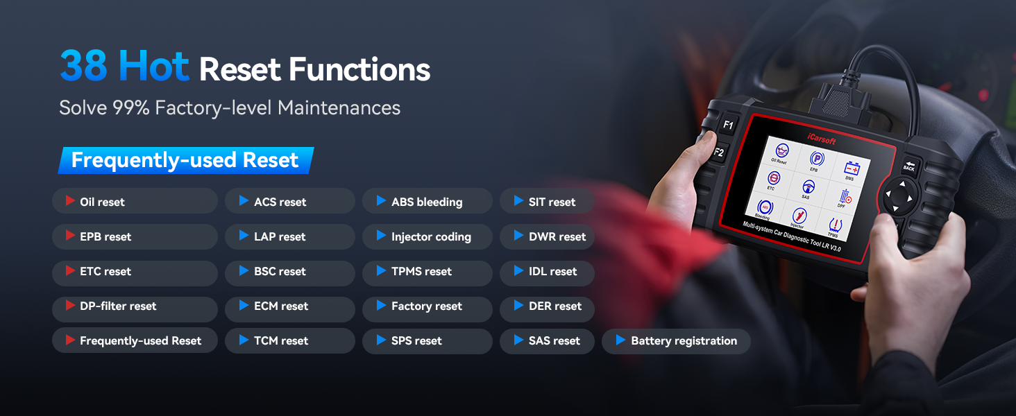 37+ Most Popular Reset Services – Equipped with 37+ reset services (based on car system ECUs): Oil reset, EPB, ETC, DP-filter reset, ABS bleeding, Injector coding, TPMS reset, Battery registration, SPS reset, ACS, LAP, BSC, ECM, TCM, SIT, DWR, IDL, DER, Powertrain configuration reset, Special calibration (e.g., SAS calibration, air conditioning compressor service) Enables quick proper functioning after component replacement.