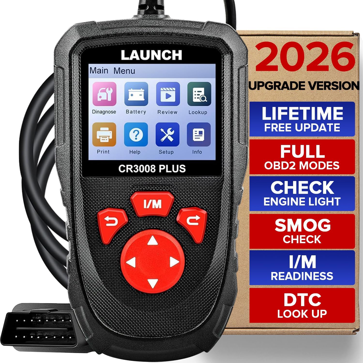 Professional Checking Car Engine Tool:LAUNCH CR3008 Plus Enhanced OBDII scanner can read and erase the trouble codes that can cause e-mission problems in your vehicle in seconds, determine check engine light the MIL (check your car engine) and reset the monitor, build a DTC lookup library you can find the related code definitions to help you determine if your car needs repair, to dramatically improve your car performance