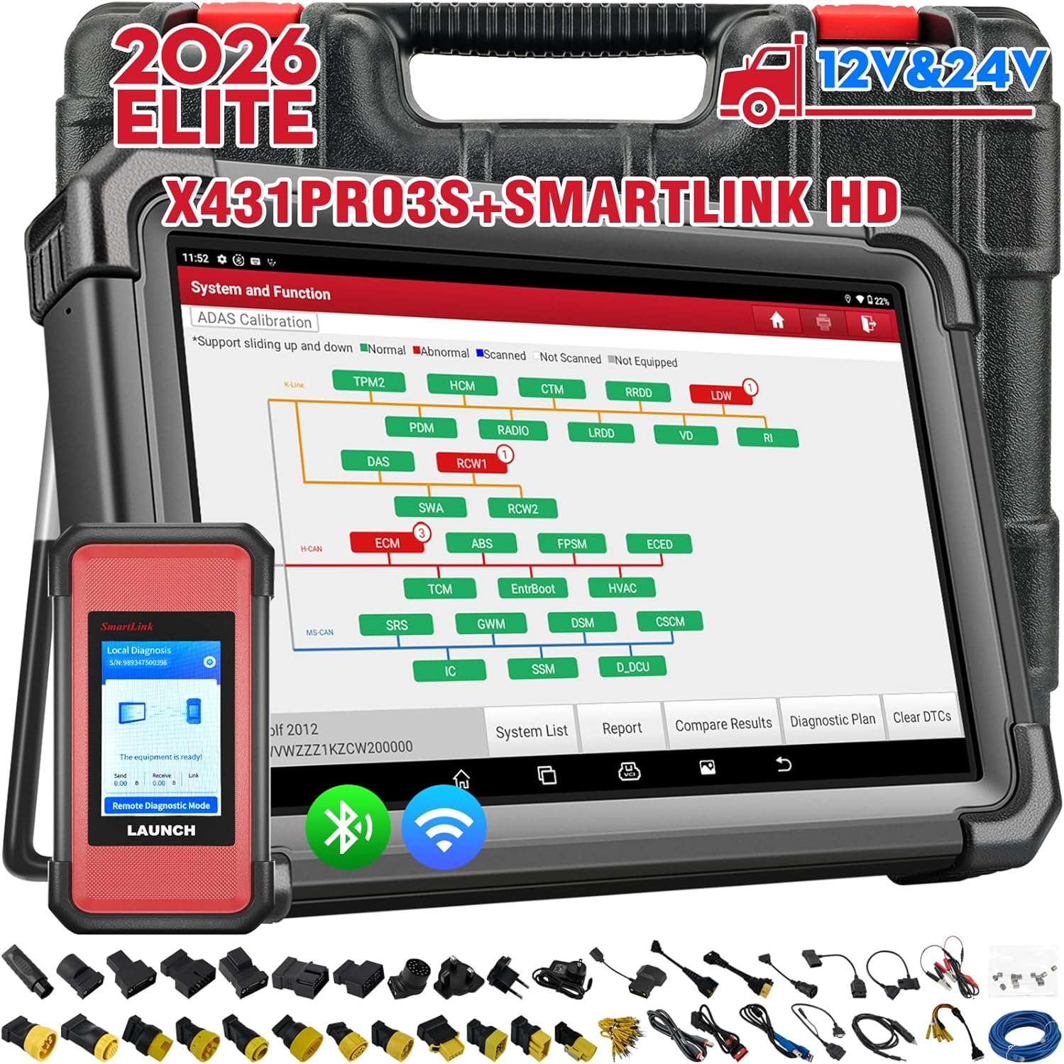 2026 LAUNCH 1st Advanced Scan Tool Compatible With 12V&24V Vehicles:Design for Passenger&Commercial Vehicles 2 in1,work for Cars/Trucks/buses/trailers/excavators/diesel engine/pick-up/etc.