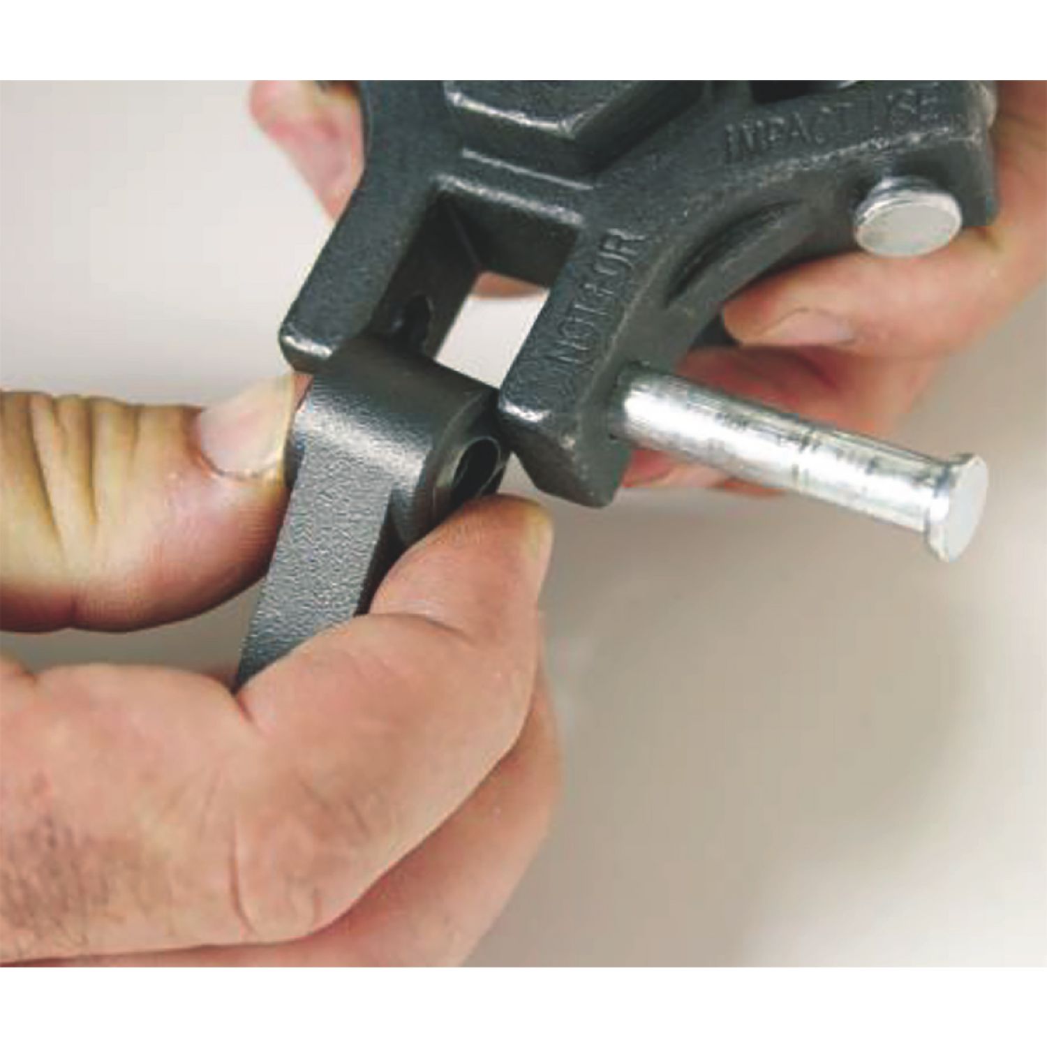 Clevis pins allow jaws to be quickly removed and replaced