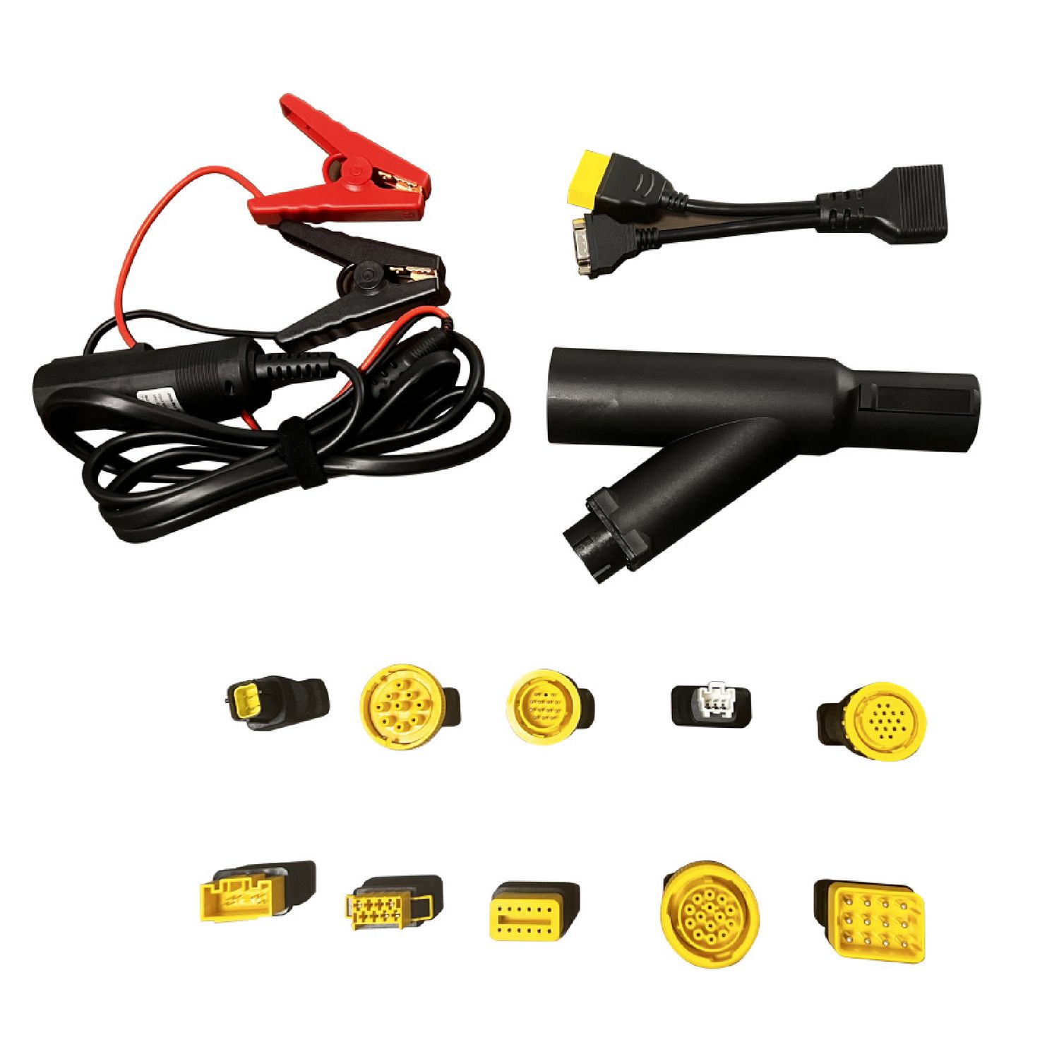 INCLUSIVE SET. Set includes: Integrated Diagnostic Connector (OBD 16), Mercedes-Benz 14 PIN (BZ 14), Isuzu 3 PIN (IU 3), CAT 9 PIN (CT 9), Volvo 8 PIN (VO8), Renault 12 PIN (RE 12),