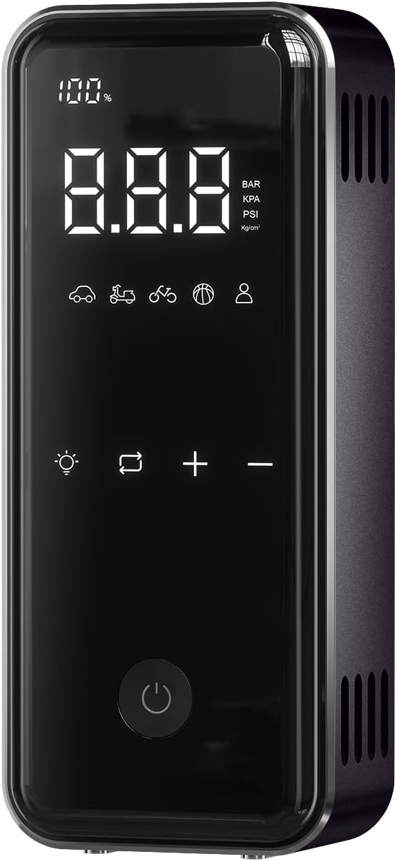 This is an excellent air pump for just about everything you need around the house and for your car, truck, or SUV. We have been using it for over 8 months to keep our tires at the correct pressure, and it has worked perfectly every time. Inflation is fast, the battery lasts well, and the touchscreen controls make it very easy to use. Charging is quick and convenient, and the built in light modes are a great bonus for nighttime use. Overall, this has been the easiest and most reliable portable inflator we have ever owned, and I plan to buy more for our other vehicles and as gifts for friends and family.