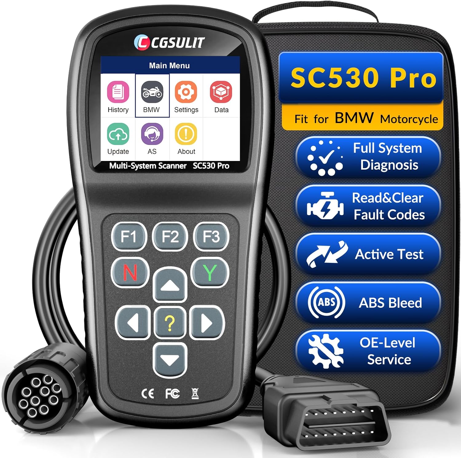 Specialized OBD2 Diagnostic Tool for BMW Motorcycles: The CGSULIT SC530 Pro scan tool is an advanced OBD2 scanner designed specifically for BMW motorcycles, featuring enhanced scan speed and compatibility. It supports all BMW motorcycle series, including popular models like the R 1250, S 1000, Sport, Touring, Roadster, Adventure, Urban Mobility, and Heritage. Compatible with BMW Motorrad from 2006 to 2025, it includes a 10-pin to OBD adapter cable for seamless connectivity, making it an essential diagnostic tool for checking engine performance and emissions. Only versions V3.01 and later support motorcycles from 2006-2014. Please update it once you receive it.