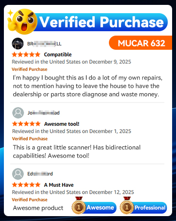 【Guarantee: Brand New Device with Protector】The MUCAR 632 Elite now comes with upgraded screen protective packaging. If you see scratches on the screen, please rest assured—they are only on the protective film. Simply peel off the screen protector upon receipt, and your device will be brand new. We guarantee no used or second-hand products are shipped. If you have any questions, please contact us via Amazon Message, and we will provide a solution within 24 hours. Thank you for your understanding. We are committed to improving product quality and service experience