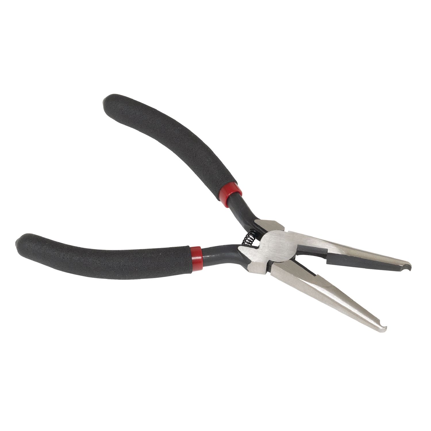 Needle nose pliers design fits into recessed pin locations found on some GM vehicles.