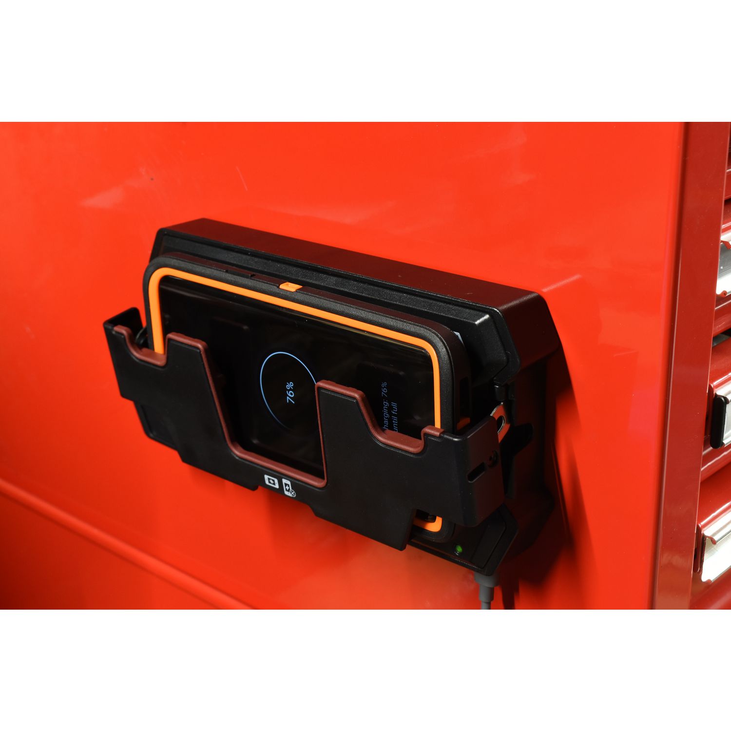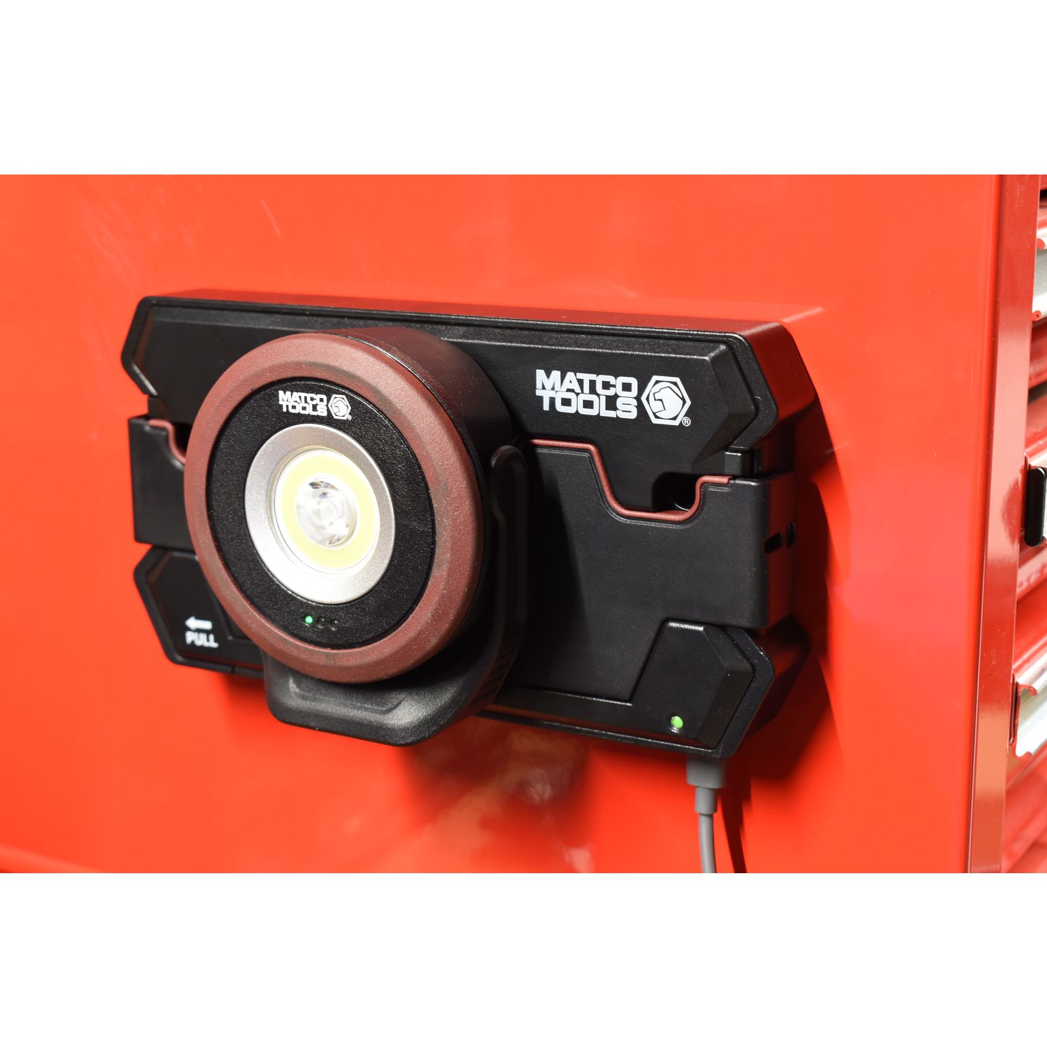 Double magnetic 20lb magnet attaches pad to the side of any toolbox or lift, Pro-Charge lights will all magnetically attach and align for charging