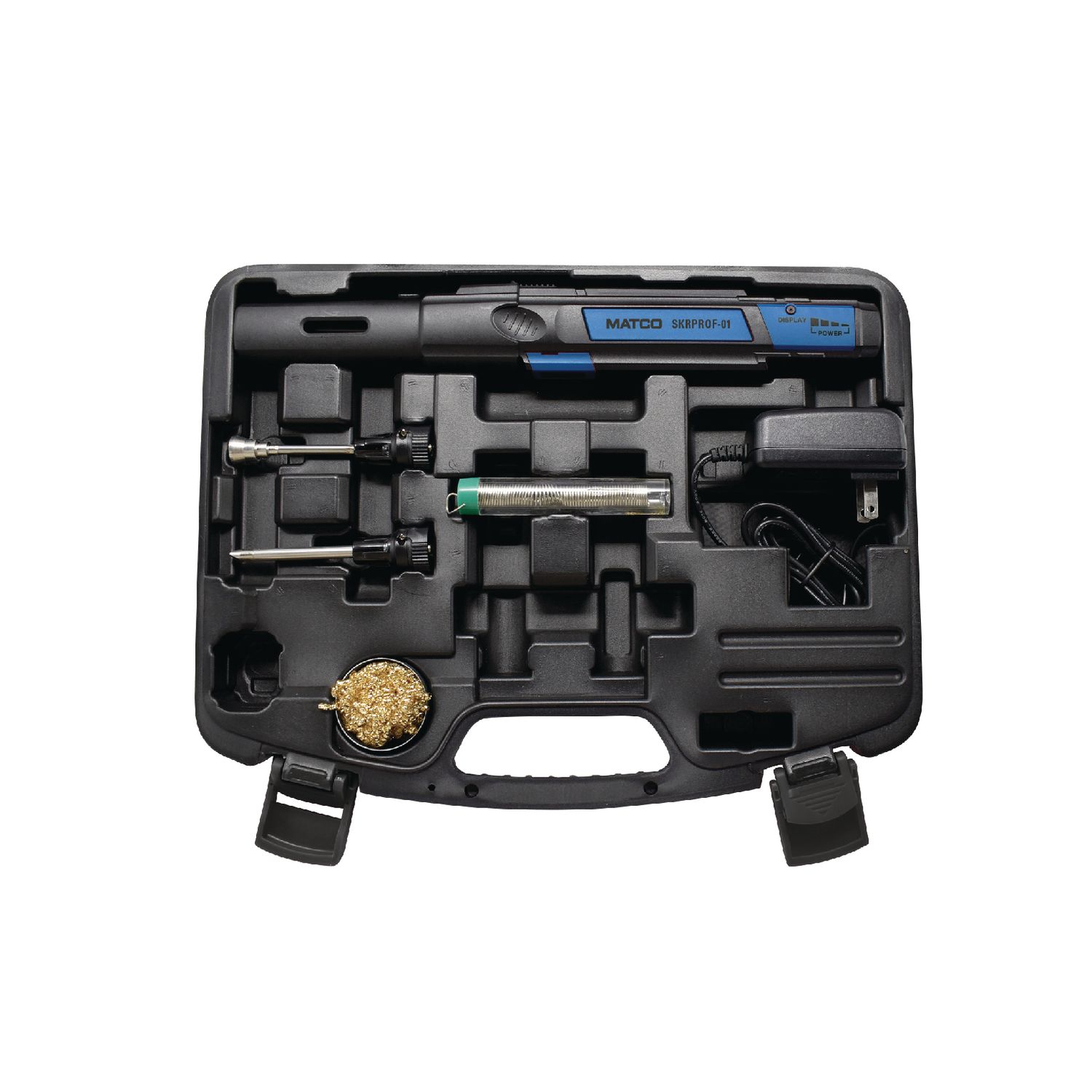 COMPREHENSIVE KIT. Includes the soldering iron, pointed and flat chisel type soldering tips, heat shrink tip, lead free solder, brass tip cleaning mesh \u0026 charger