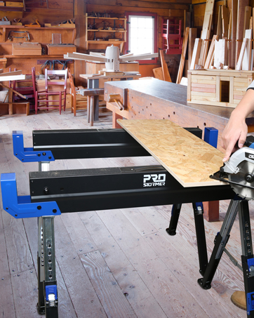 Prostormer heavy duty sawhorse supports up to 2600Lbs per pair. It is a good helper for woodworking and other jobsite projects.