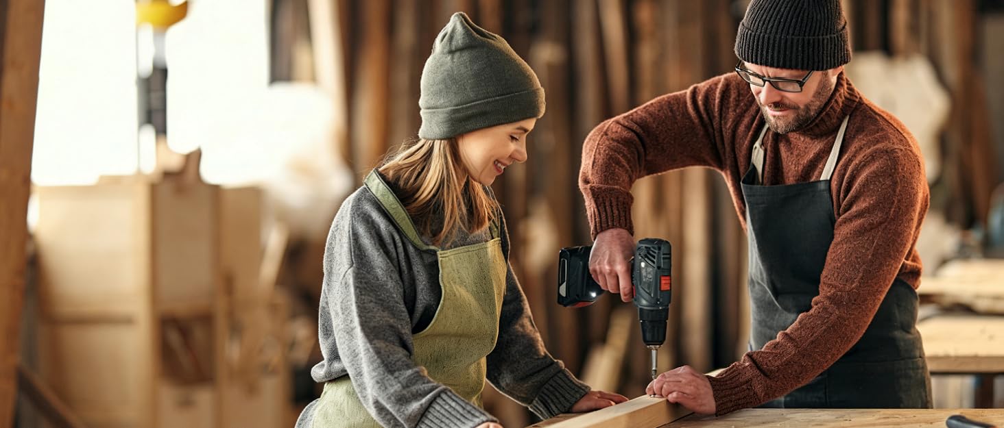 ✅【Powerful Brushless Drill】BURGAEDEN cordless drill equips with brushless motor. Higher power and longer life better than brushed motor. The power drill bit has a maximum speed of 2000rpm and a maximum torque of 450in-Lbs. In addition, brushless drills generate no friction or heat during use, require little maintenance, and perform better and more smoothly. Make your task like a breeze!