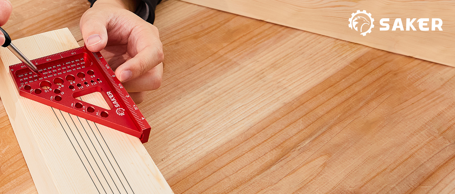 Multi-Functional Square: This Saker carpenter tool combines the roles of a rafter and triangle ruler, integrating measuring, marking, calibration, and drill bit sizing in one tool. It supports precise 0–90° layouts and accurate drill bit sizing for clean, consistent results in woodworking and construction tasks.