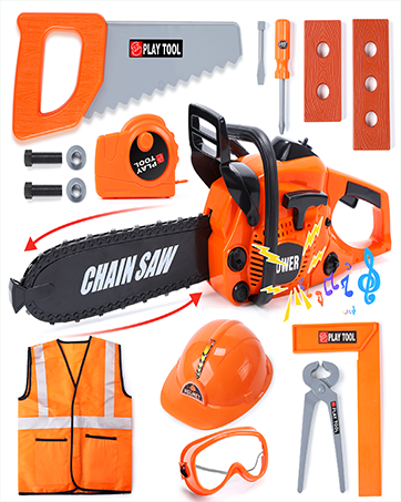 【Durable & Safe Material】 The kids chainsaw set is made of premium ABS and PP plastic, safe and eco-friendly, and harmless to humans. Also, it makes our toys have greater stiffness to increase robustness. All of the tools have been created to be a perfect size, with rounded edges and a smooth surface for your child’s smaller hands to handle.