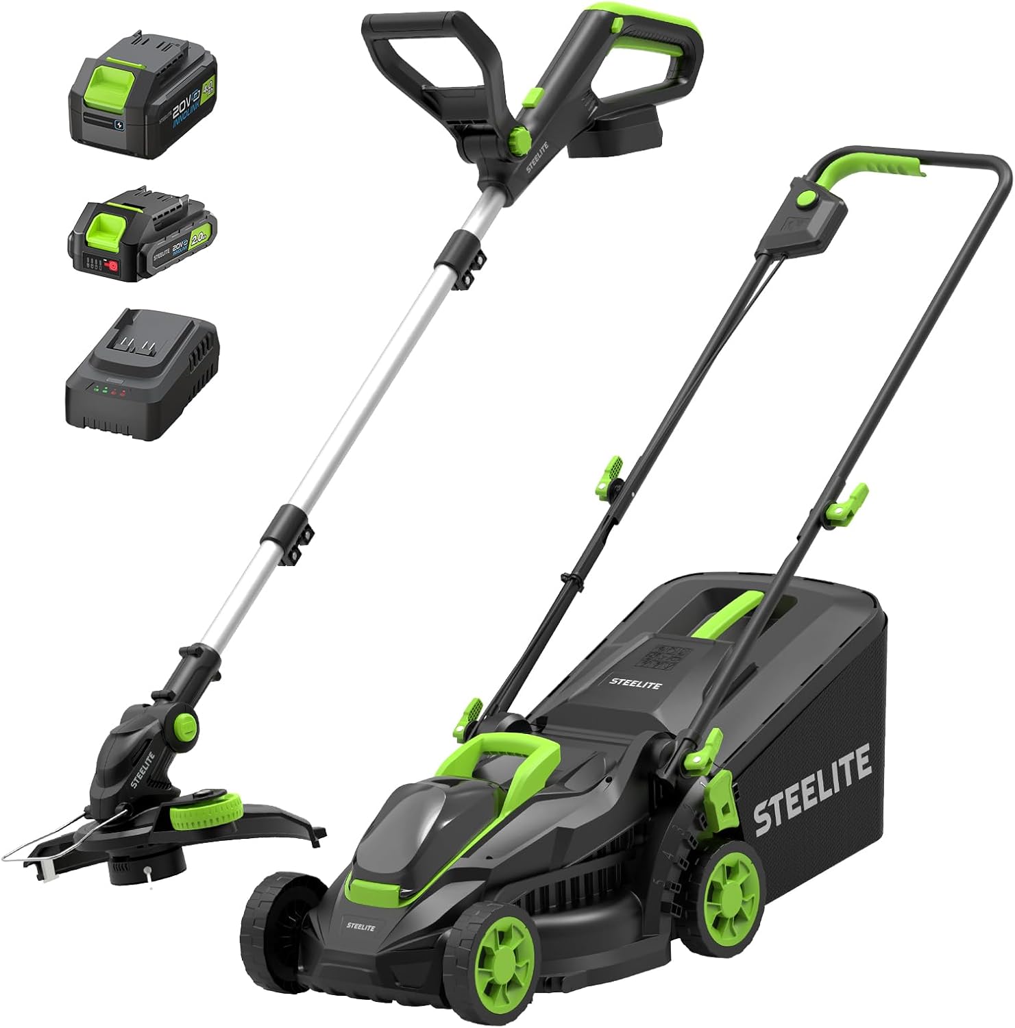 Ultra-Lightweight & Effortless Maneuverability: The walk-behind mower weighs only 20.5 lbs, making it easy to lift, push, and steer around flower beds, trees, and tight corners. The compact 13-inch deck glides through small yards and slopes with ease. The string trimmer features a lightweight design and adjustable handle, reducing arm fatigue during extended edging tasks—perfect for users of all ages and strengths