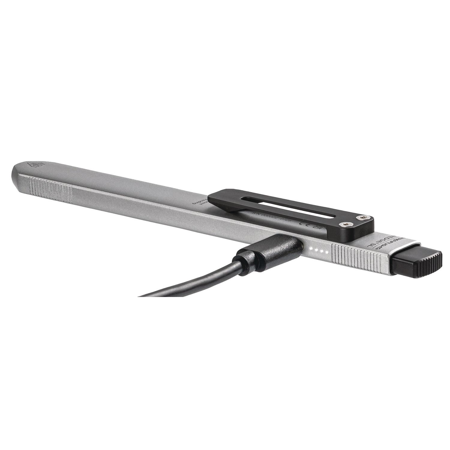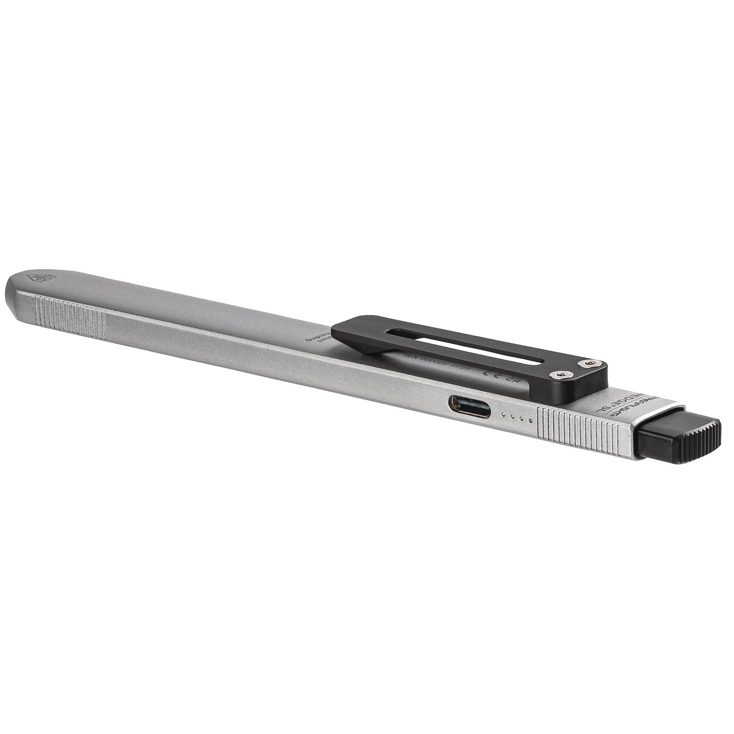 Features a durable stainless steel pocket clip and a rubber end cover for hands-free use