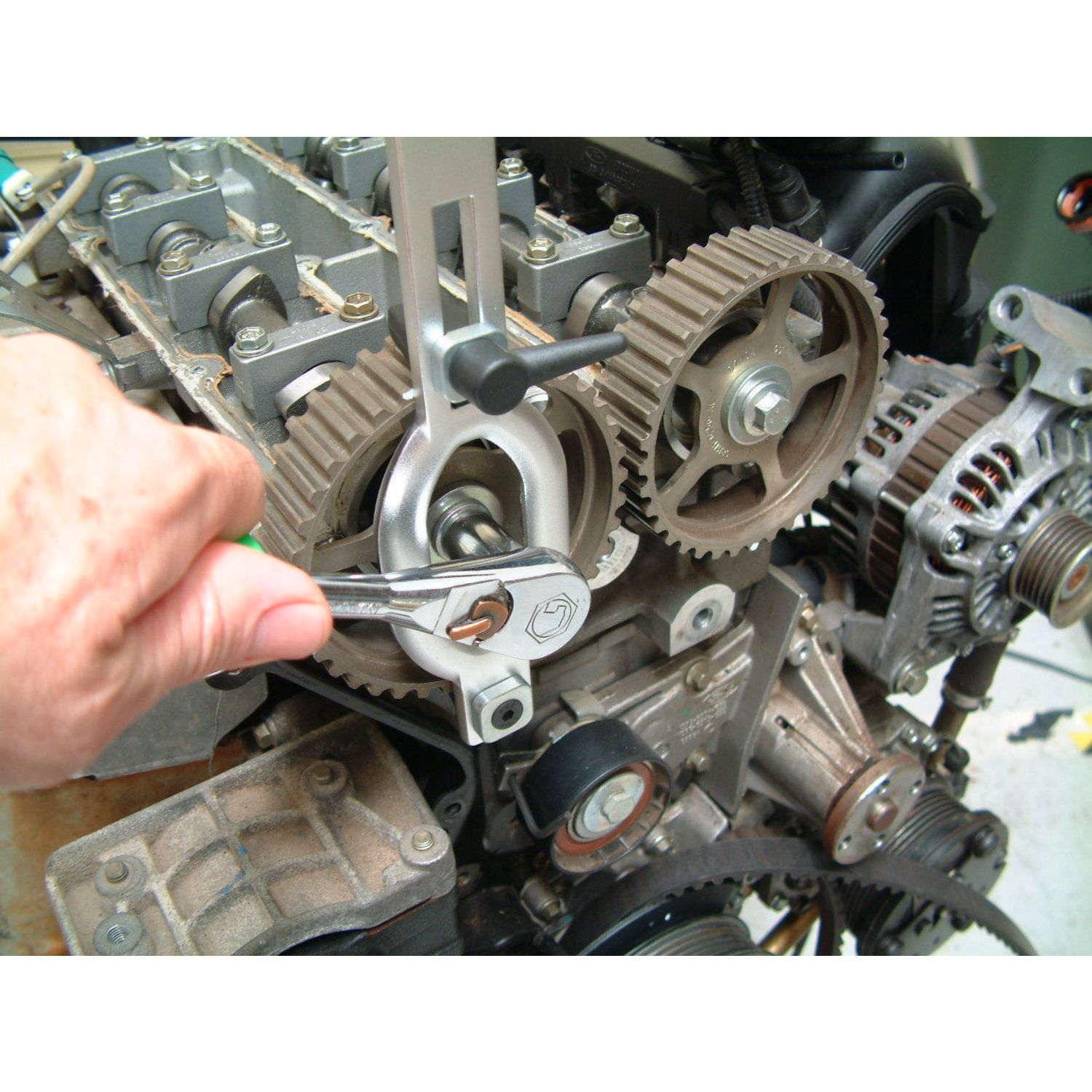 Securely holds the timing gear during removal or installation