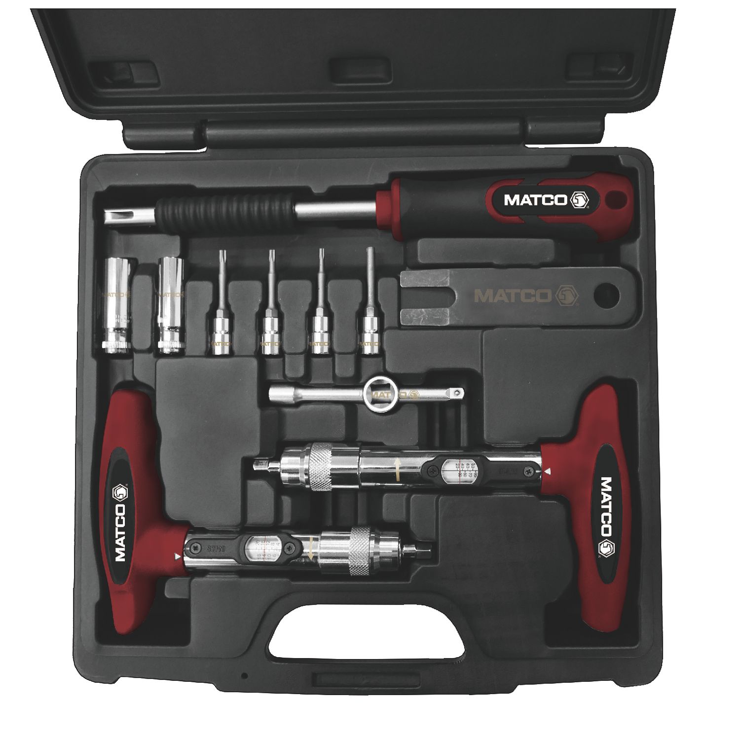 Includes two ratcheting, locking torque tools to ensure proper torque setting