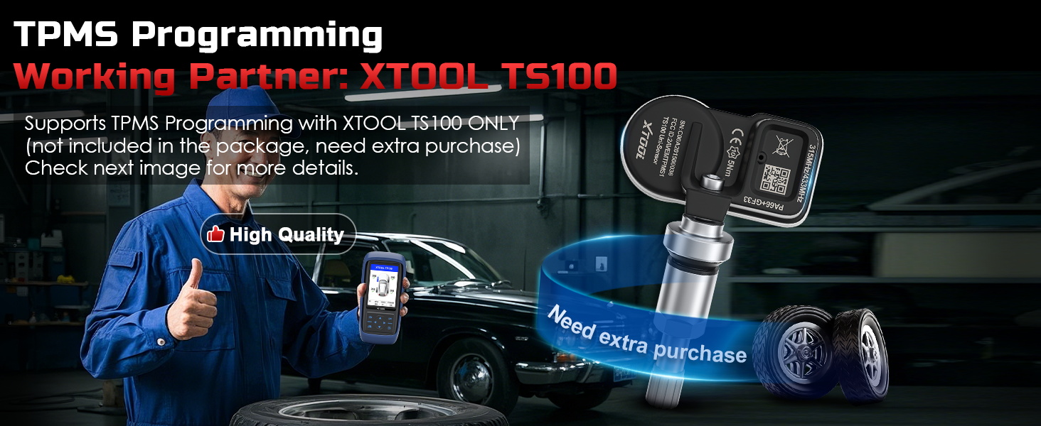 Professional One-stop TPMS Scan Tool with Top Full Services: Please note that it Do not work for all Sensors, ONLY Works for programmed OE/aftermarket sensors or XTOOL Sensors. XTOOL TP150 is an affordable and portable TPMS relearn tool/activate tool, XTOOL TS100 PRO tps sensor programmer for almost all global vehicles. It also packs TPMS health diagnose, read real-time sensor info: sensor ID/tire pressure/temperature/battery status/frequency; check OE part number, diagnoses to read/clear DTCs and turn off annoying TPMS warning light after specific repairing, and also a cost-effective way to replace broken OE/aftermarket sensors, ensure a safe driving