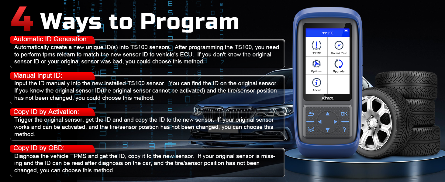 1 TPMS Programming 2 4 Ways to Program 3 TP150 VS Others 4 XTOOL TS100